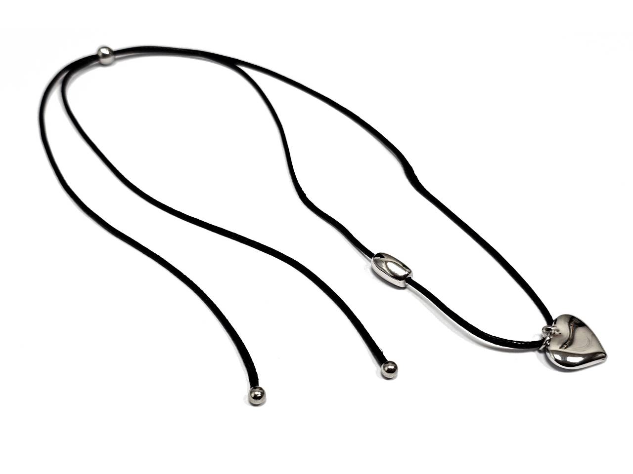 Κολιέ Ατσάλι 316L, κορδόνι με καρδιά σε χρώμα Ασημί