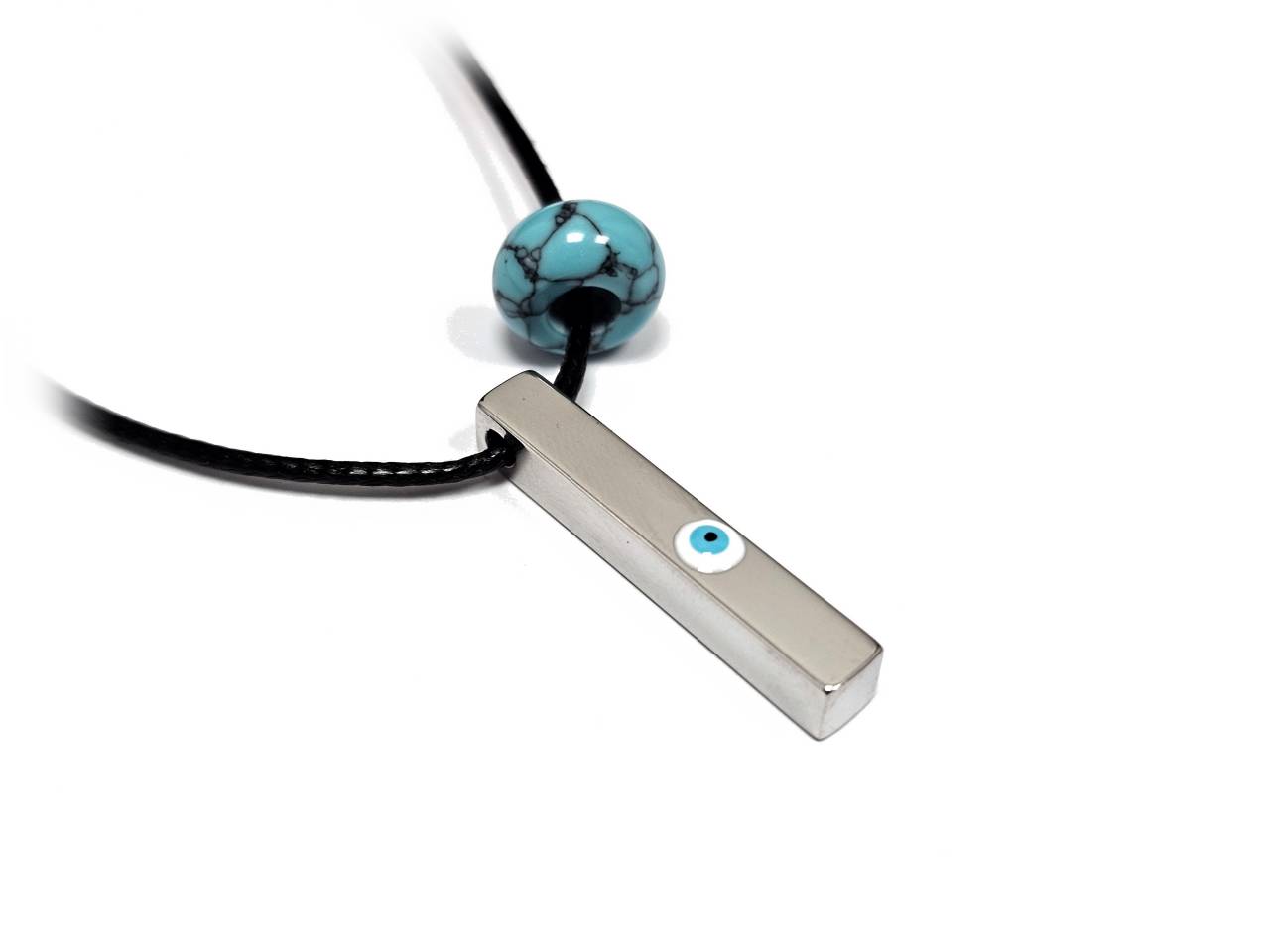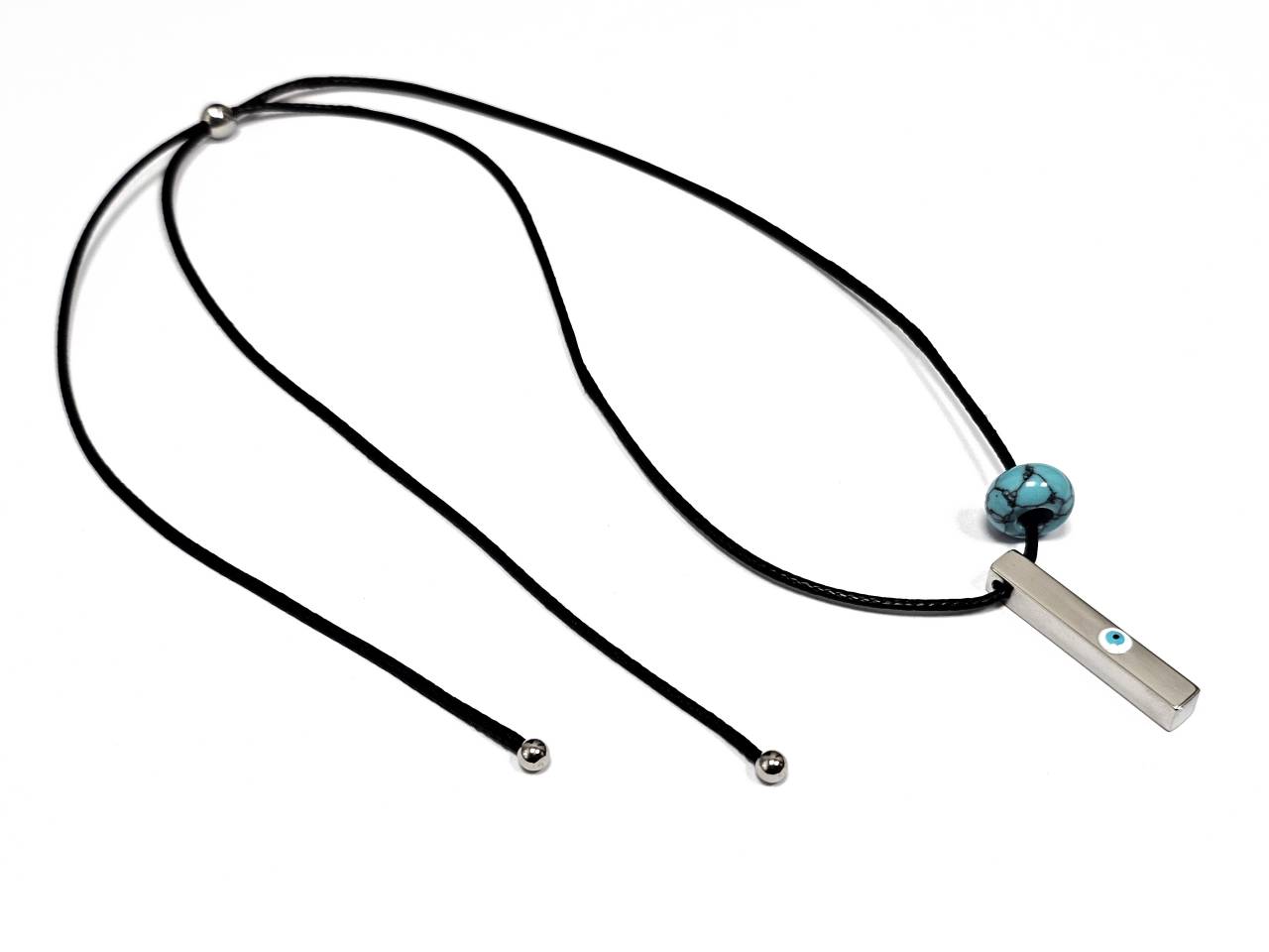 Κολιέ Ατσάλι 316L, κορδόνι με μάτι και τυρκουάζ πέτρα σε χρώμα Ασημί