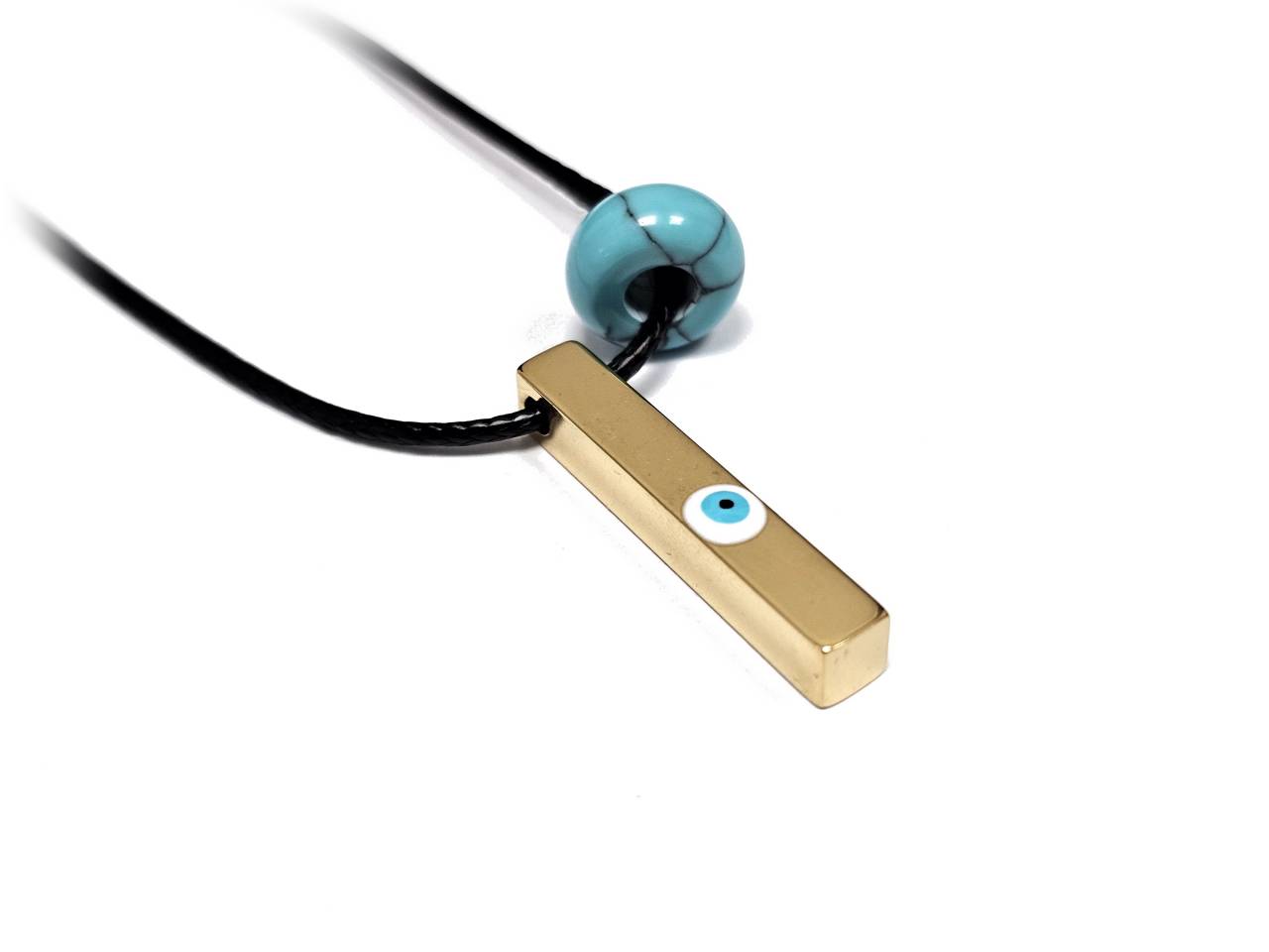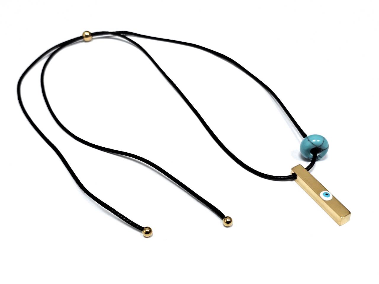 Κολιέ Ατσάλι 316L, κορδόνι με μάτι και τυρκουάζ πέτρα σε χρώμα Χρυσαφί