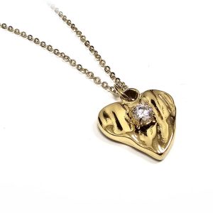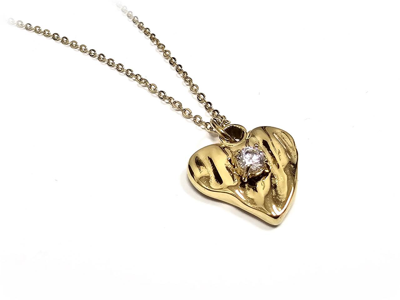 Κολιέ Ατσάλι 316L, αλυδίδα καρδιά με στρας σε χρώμα Χρυσαφί