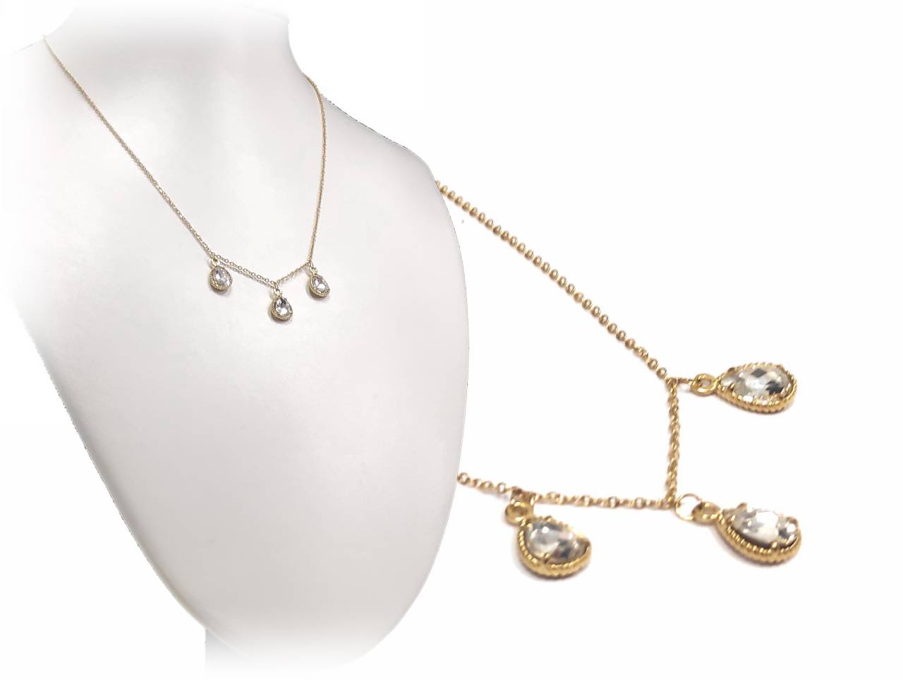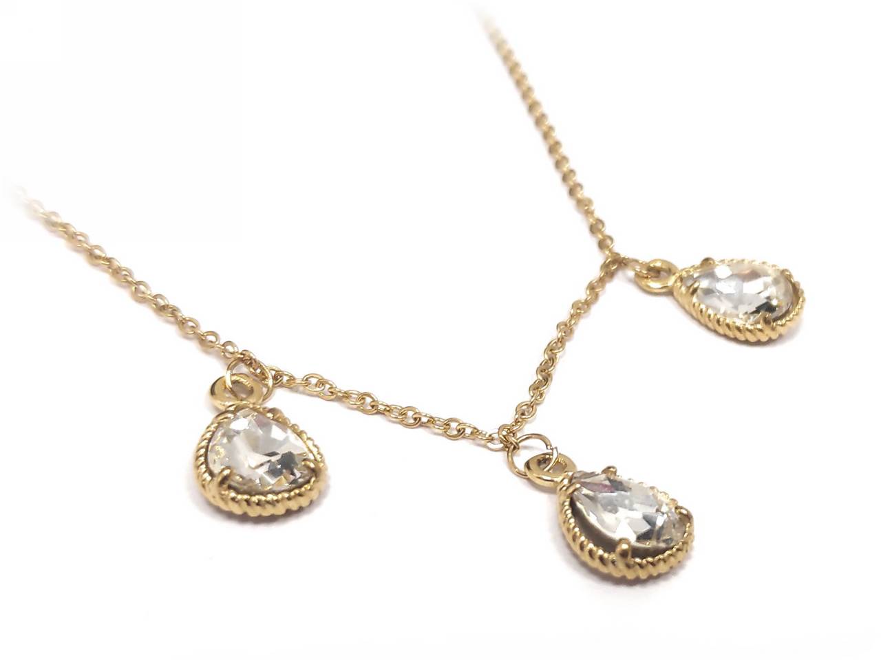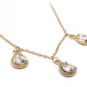 Κολιέ Ατσάλι 316L, αλυσίδα με κρυσταλλάκια δάκρυ σε χρώμα Ασημί, Μήκος 40cm
