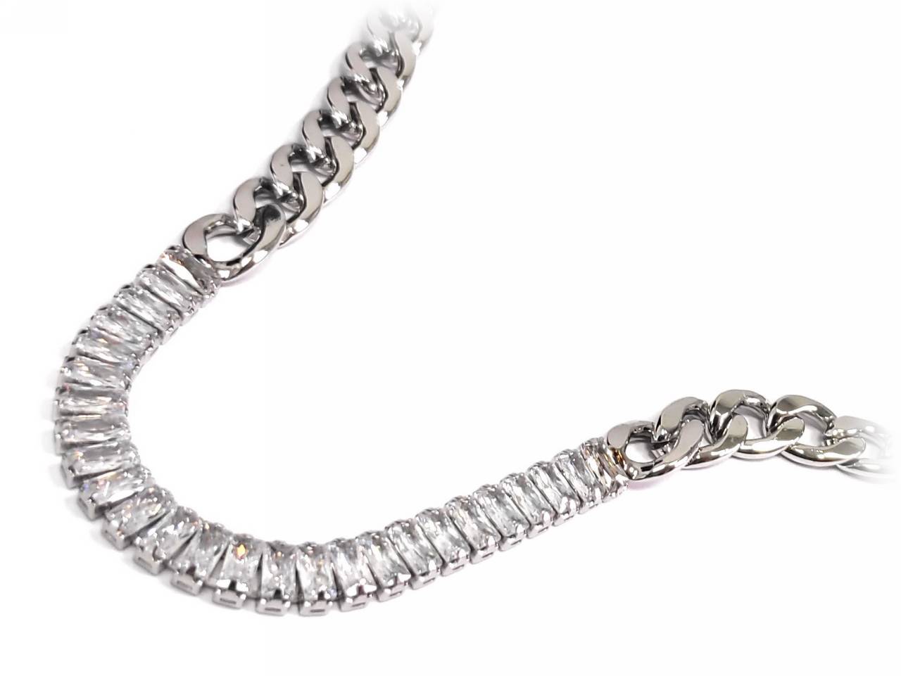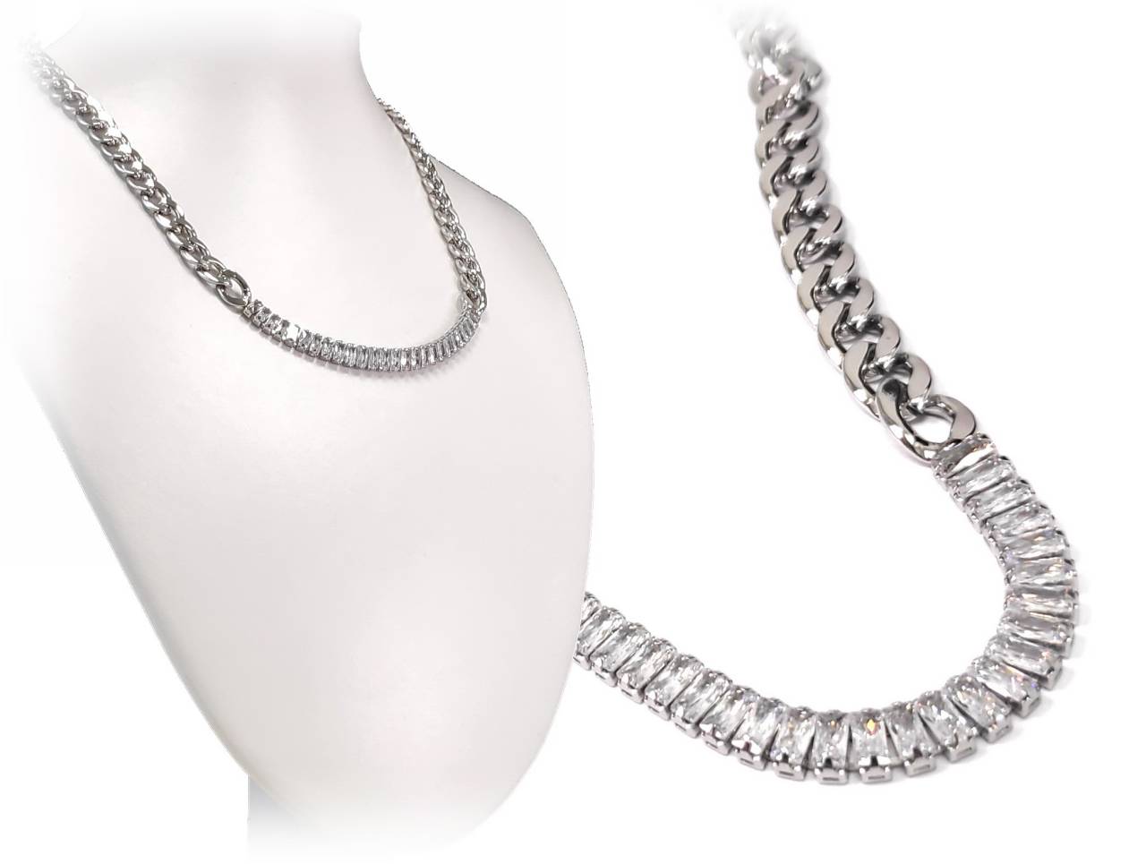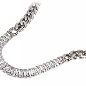 Κολιέ Ατσάλι 316L, αλυσίδα με κρυσταλλάκια σε χρώμα Ασημί, Μήκος 40cm