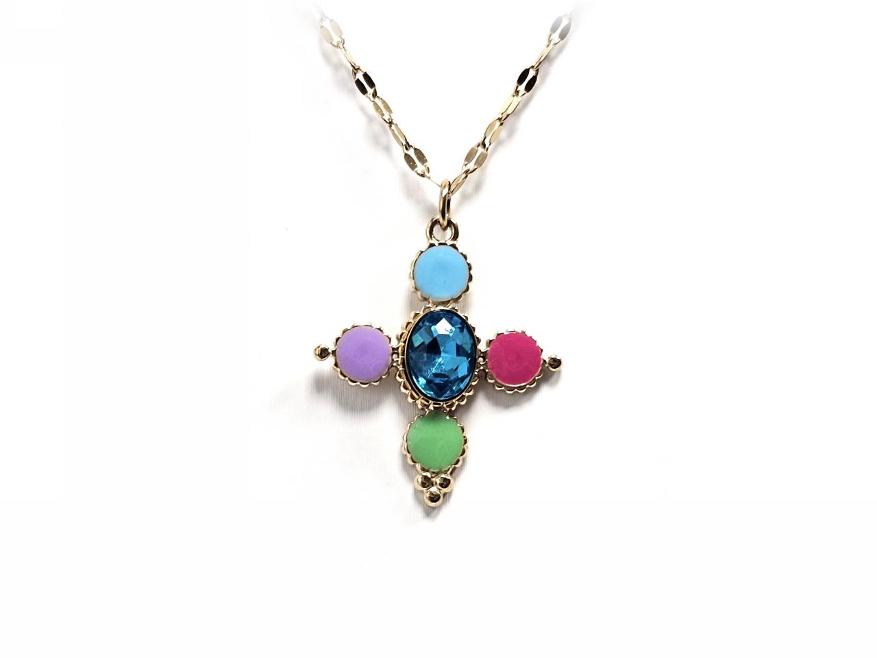 Κολιέ Ατσάλι 316L, αλυσίδα με σταυρό και στρας σε χρώμα Χρυσαφί
