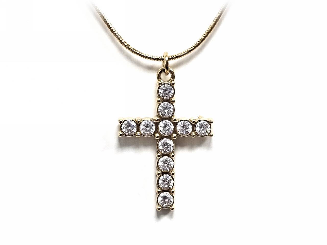 Κολιέ Ατσάλι 316L, αλυσίδα με σταυρό και στρας σε χρώμα Χρυσαφί