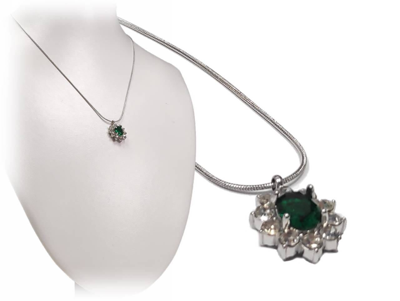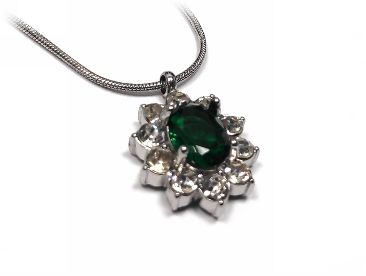 Κολιέ Ατσάλι 316L, αλυσίδα με στρας και κρυσταλλάκι σε χρώμα Ασημί
