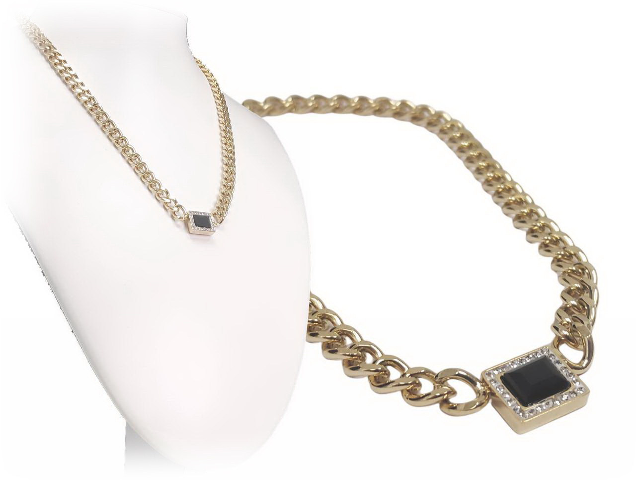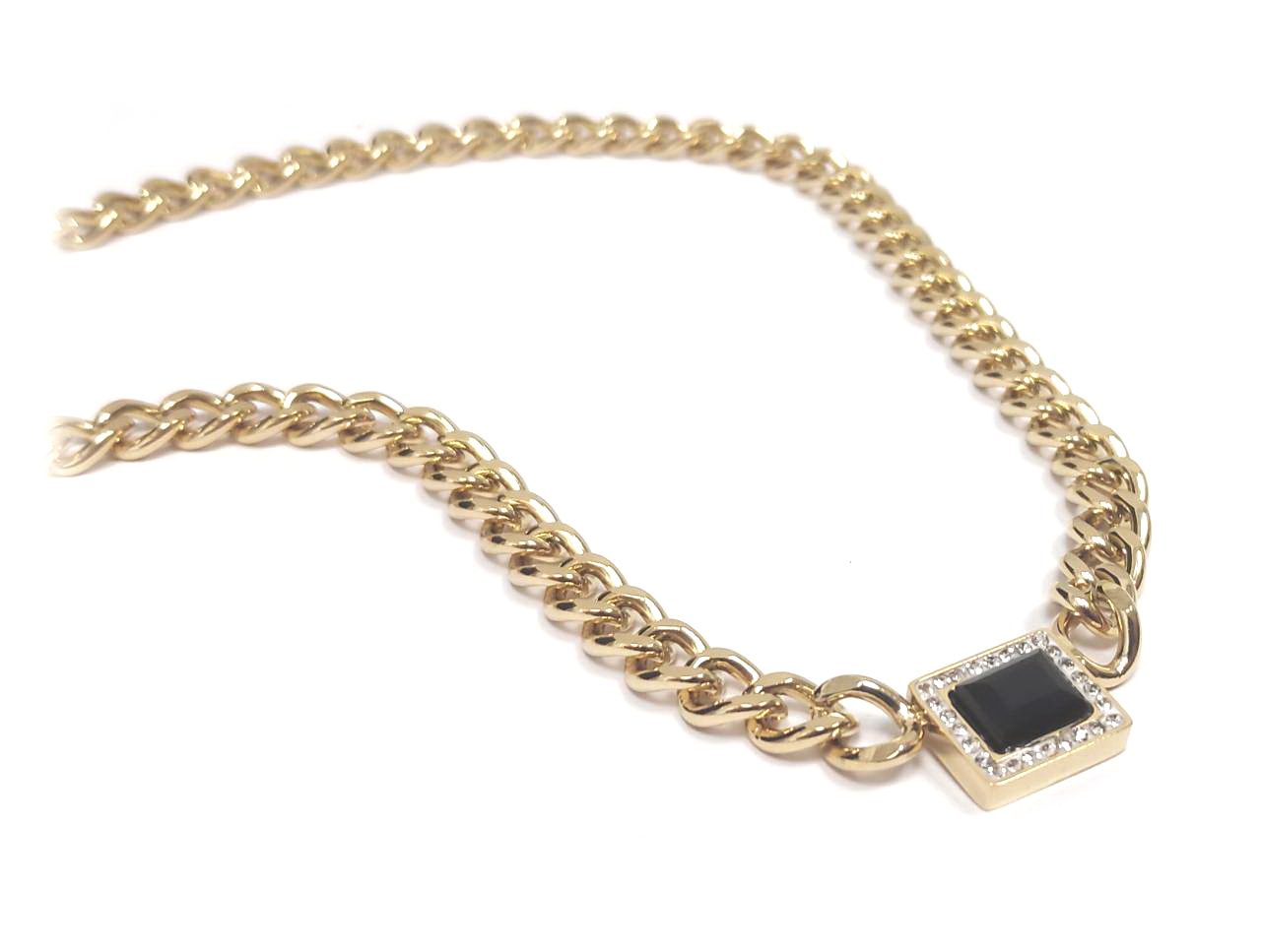 Κολιέ Ατσάλι 316L, αλυσίδα με στρας και κρυσταλλάκι σε χρώμα Χρυσαφί