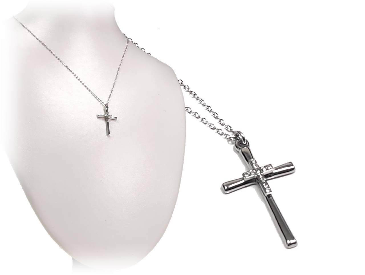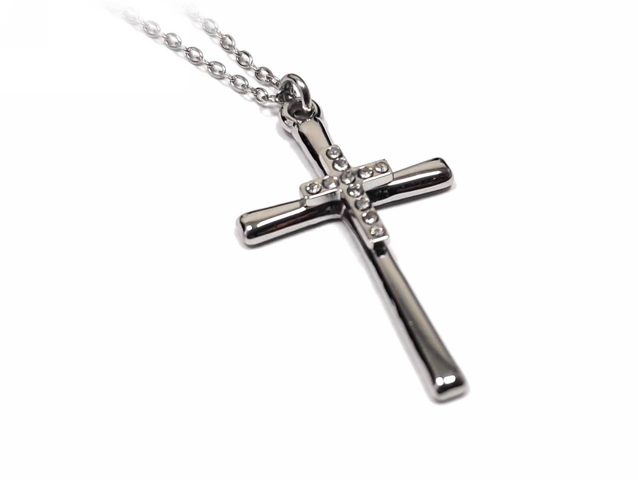 Κολιέ Ατσάλι 316L, αλυσίδα σταυρός με στρας σε χρώμα Ασημί