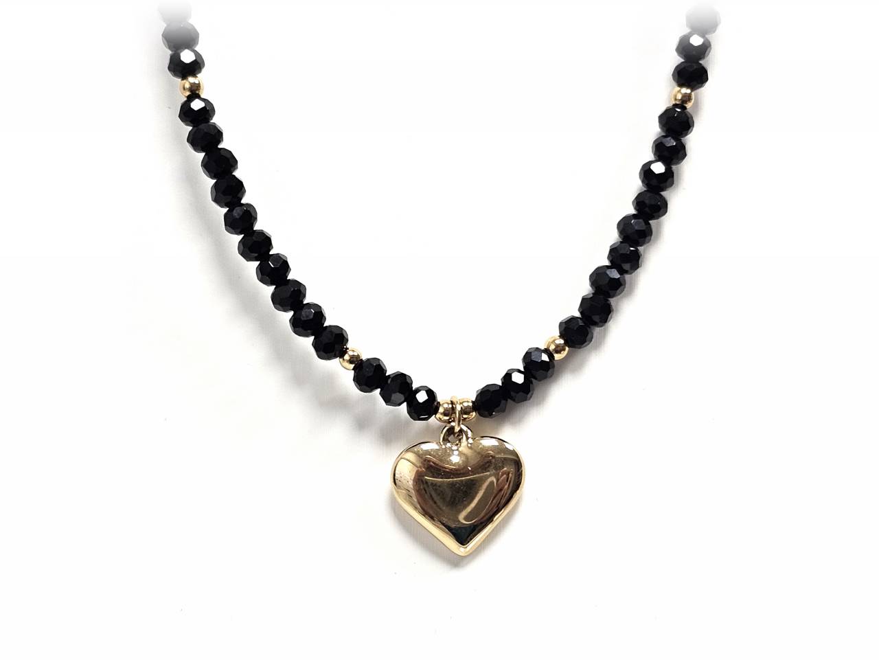Κολιέ Ατσάλι 316L, καρδιά με κρυσταλλάκι σε χρώμα Χρυσαφί