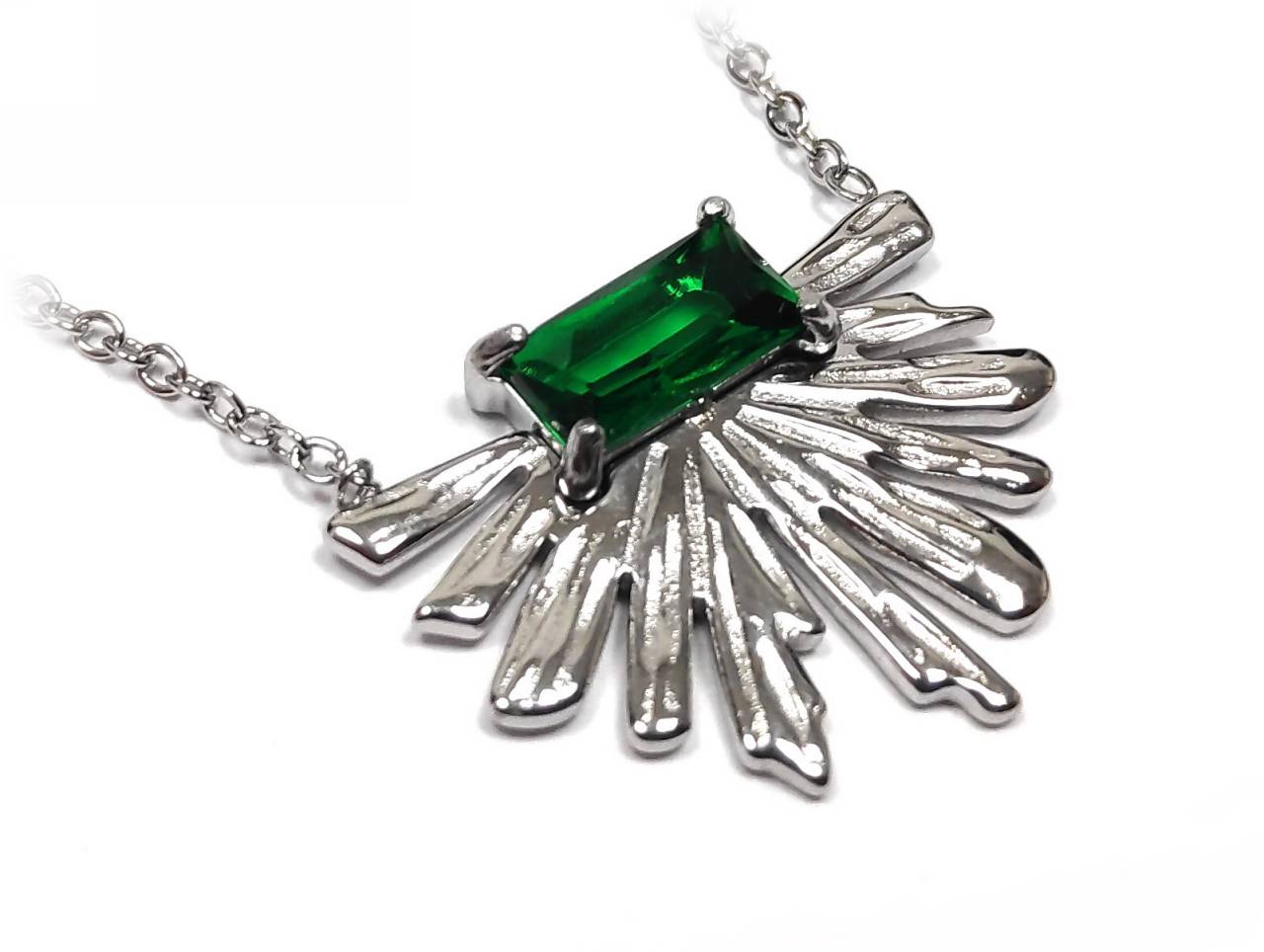 Κολιέ Ατσάλι 316L, με αλυσίδα και κρυσταλλάκι σε χρώμα Ασημί