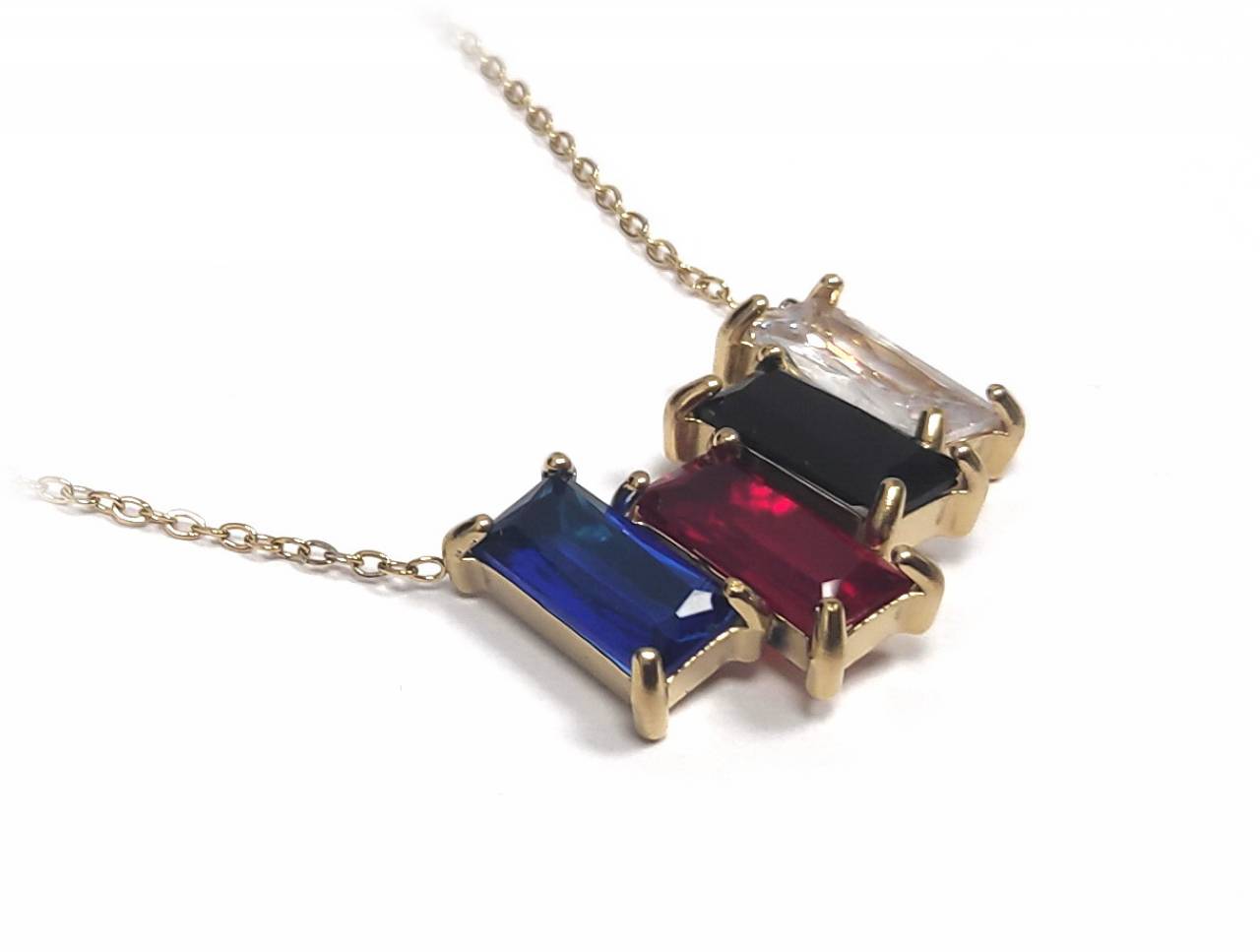 Κολιέ Ατσάλι 316L, με πολύχρωμα κρυσταλλάκια σε χρώμα Χρυσαφί, Μήκος 40cm