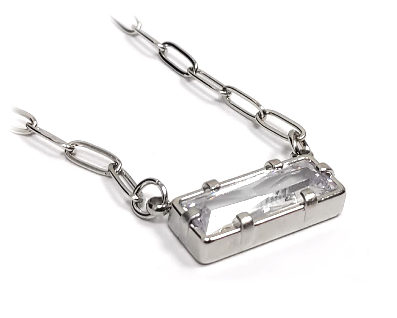 Κολιέ Ατσάλι 316L,αλυσίδα με κρυσταλλάκι σε χρώμα Ασημί, Μήκος 40cm