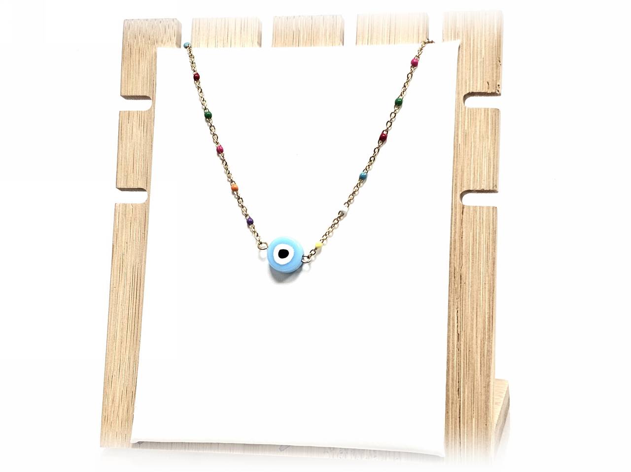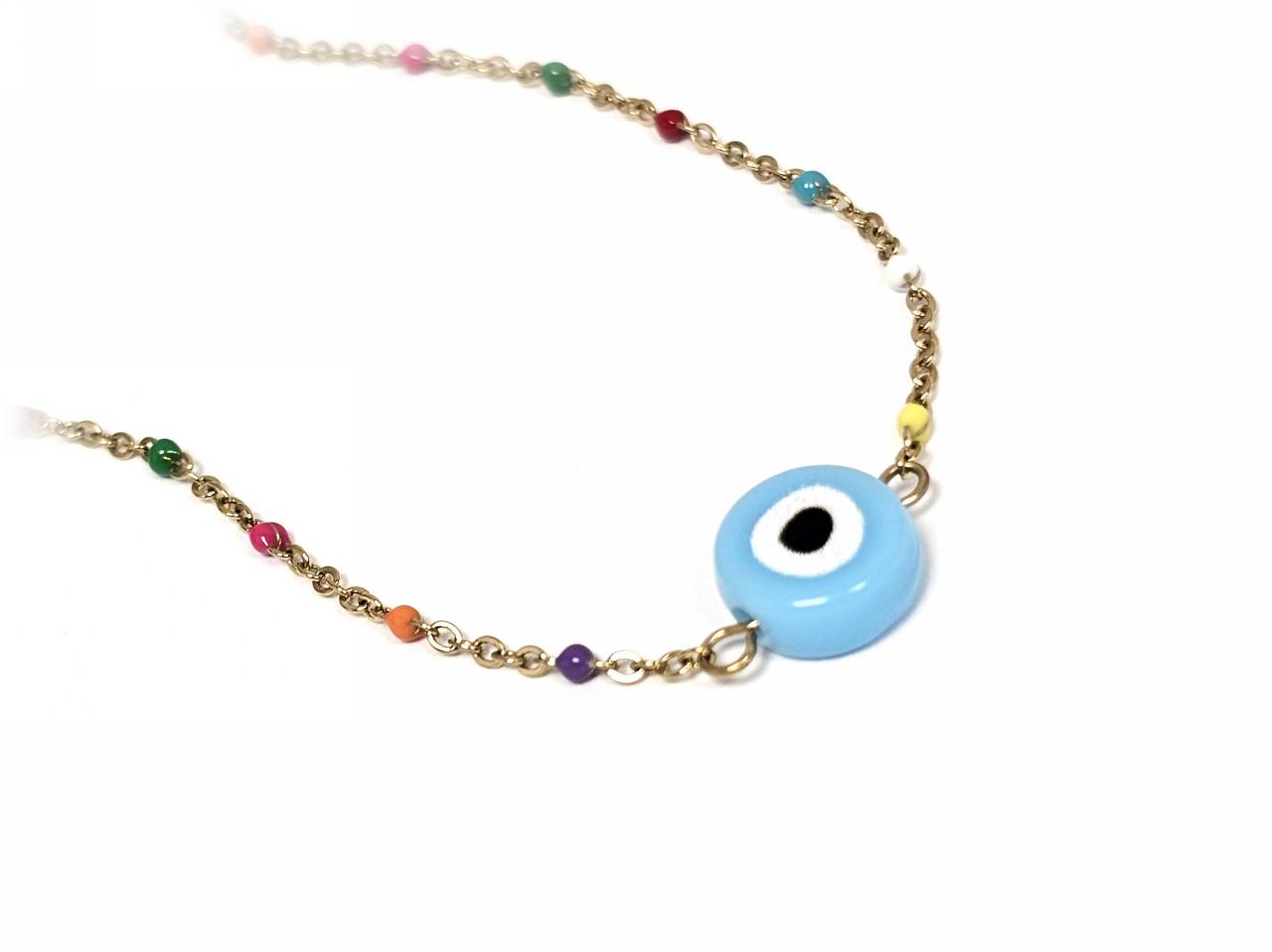 Κολιέ Ατσάλι 316L, αλυσίδα με διάφορες πέτρες και μάτι σε χρώμα Χρυσαφί