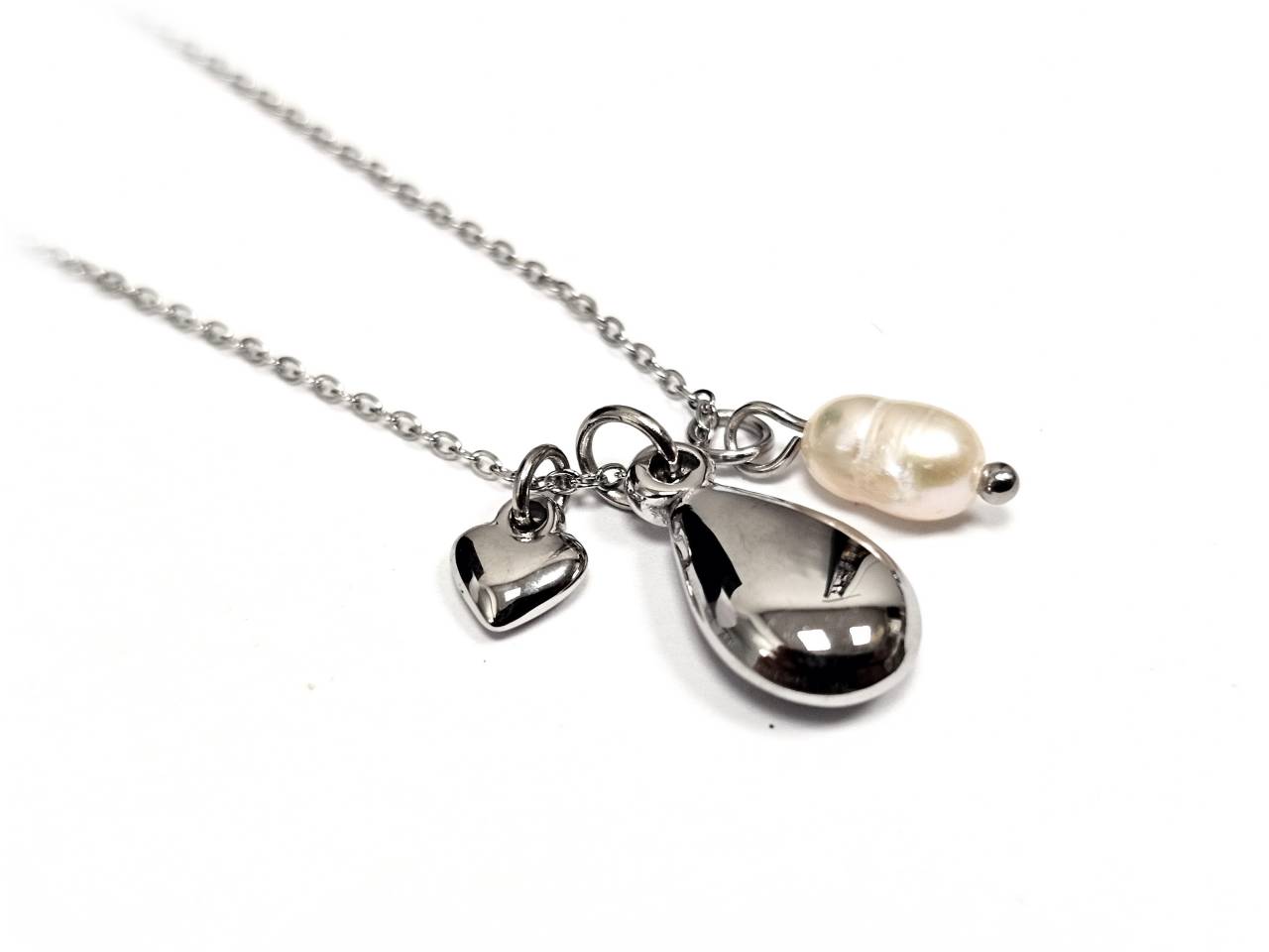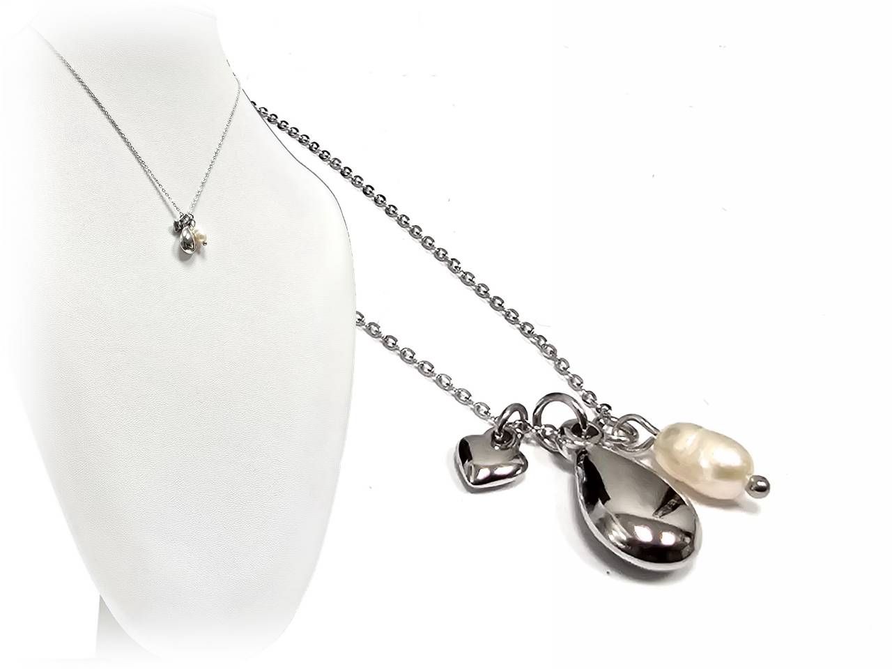 Κολιέ Ατσάλι 316L, αλυδίδα με μαργαριτάρι και καρδιά σε χρώμα Ασημί