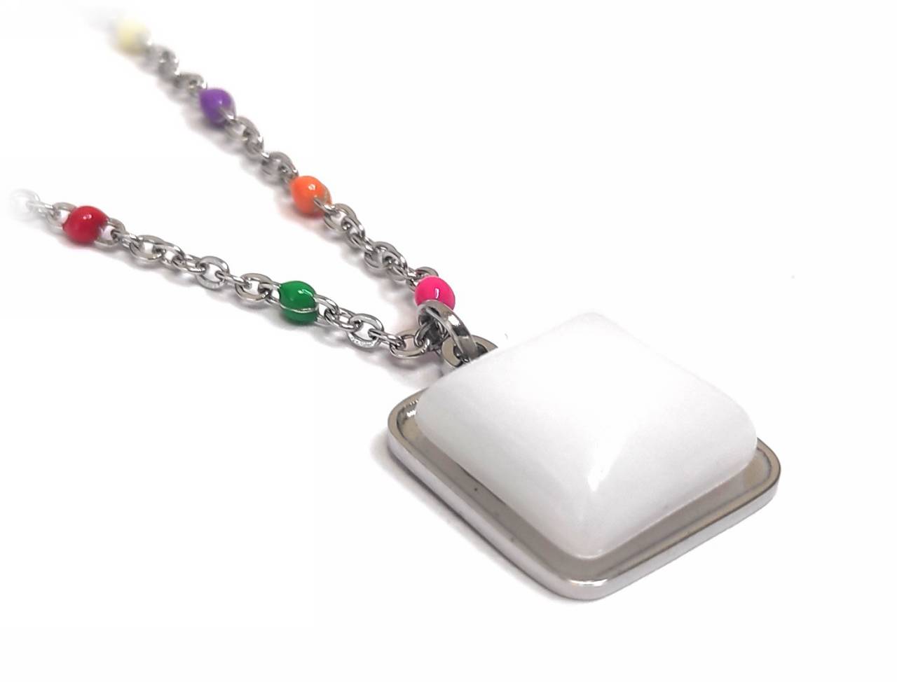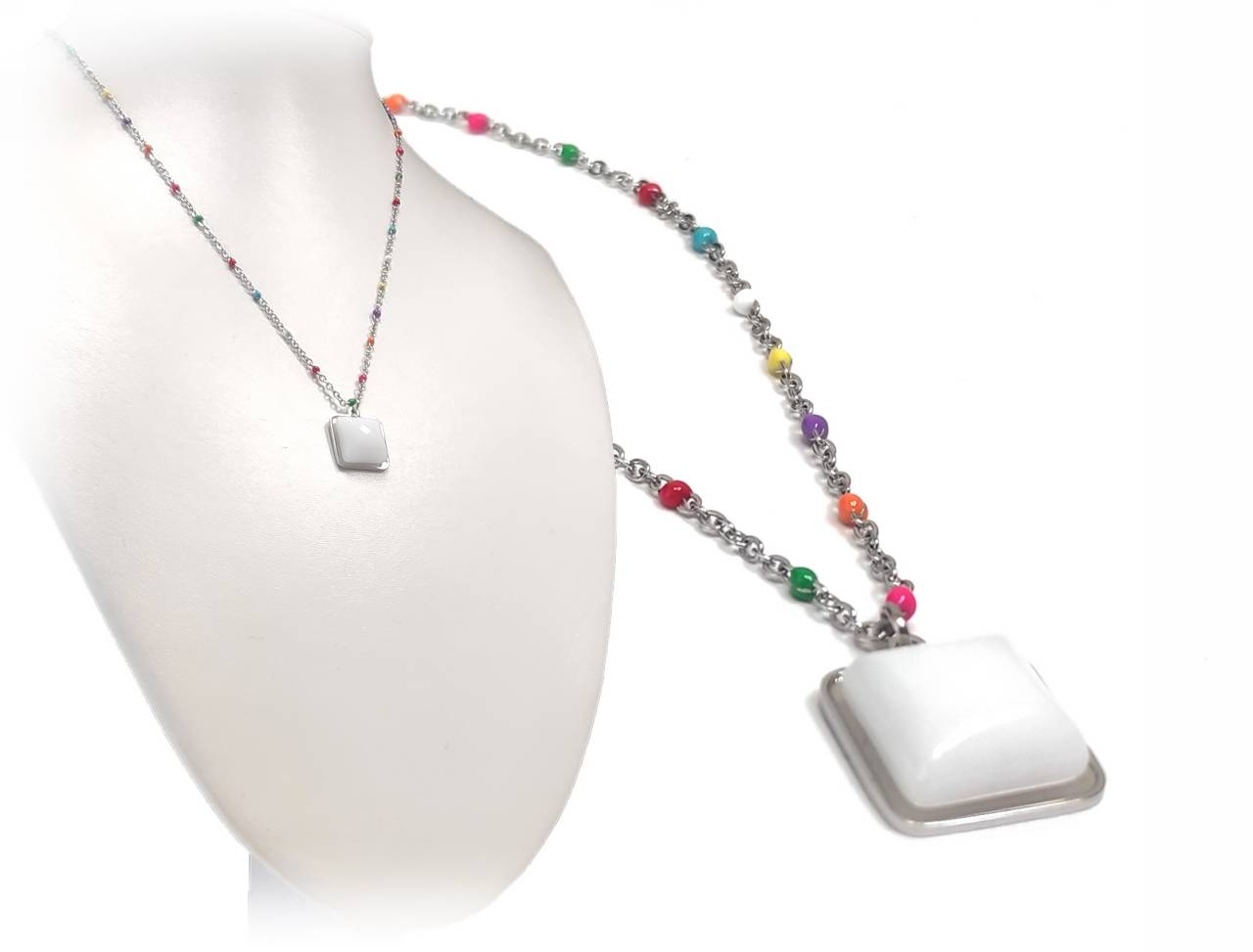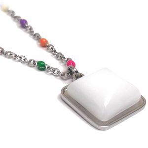 Κολιέ Ατσάλι 316L, αλυσίδα με φίλντισι και πολύχρωμο σμάλτο σε χρώμα Ασημί
