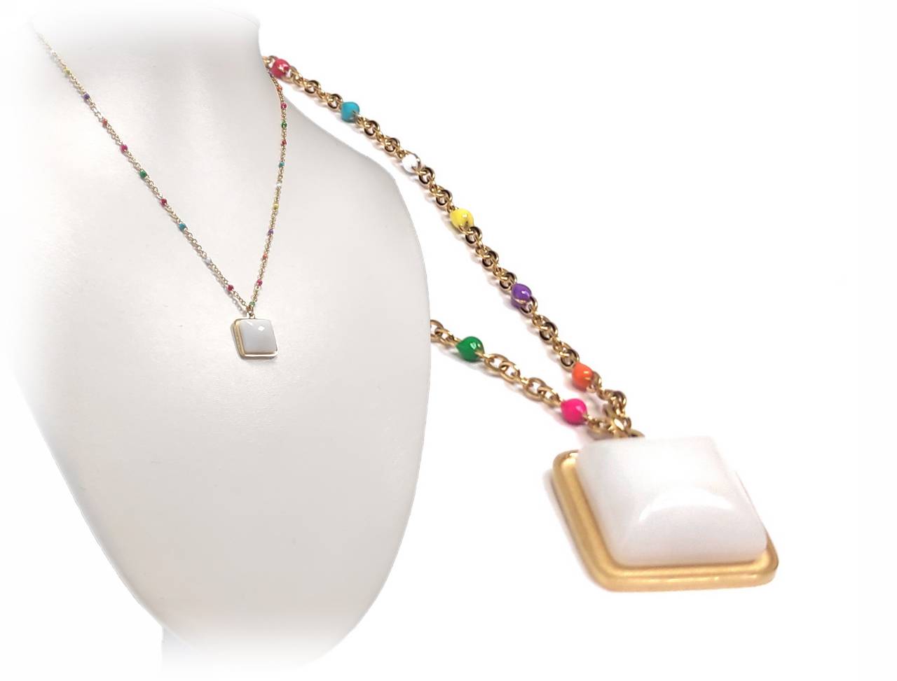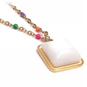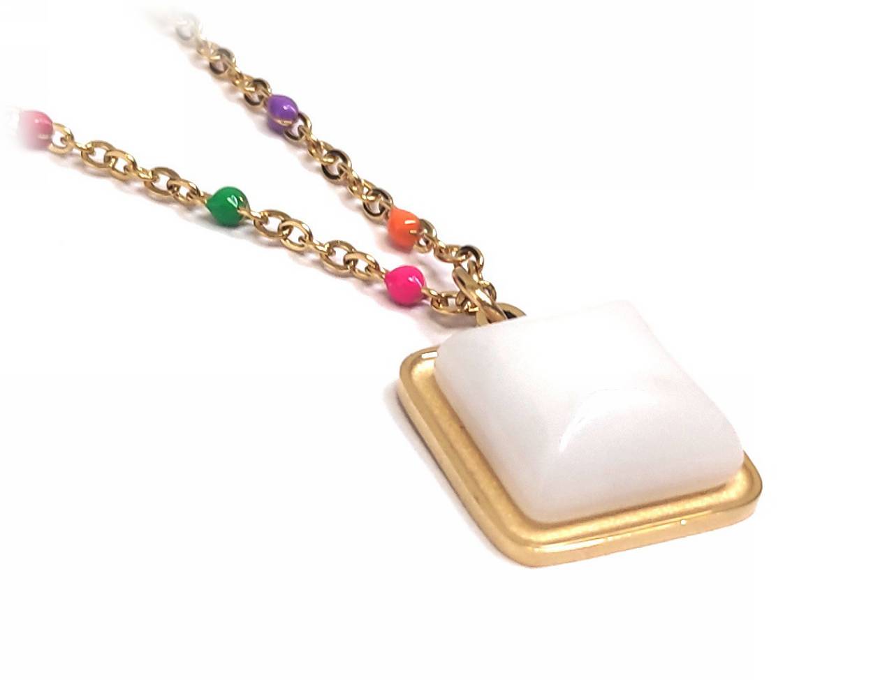Κολιέ Ατσάλι 316L, αλυσίδα με φίλντισι και πολύχρωμο σμάλτο σε χρώμα Χρυσαφί