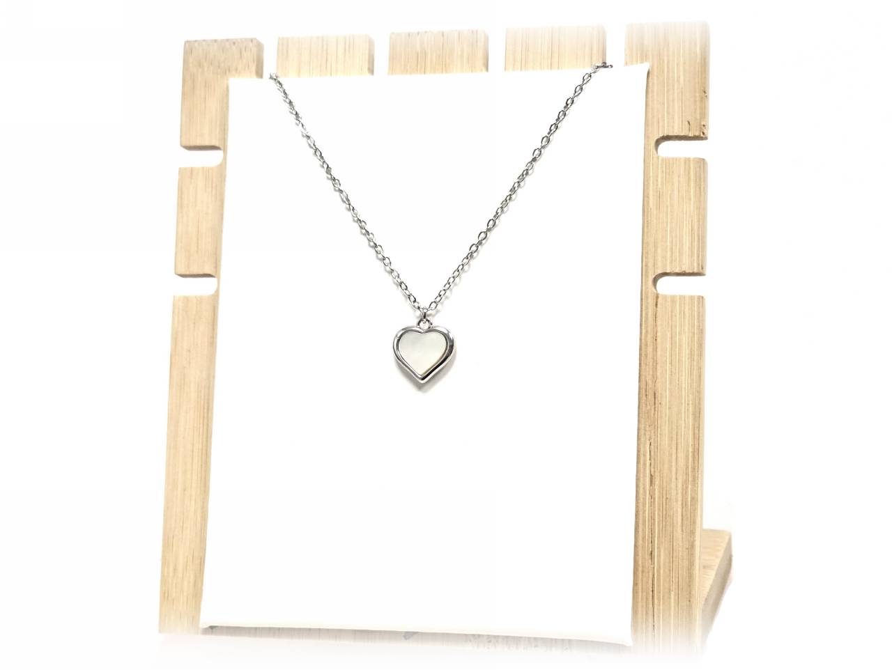Κολιέ Ατσάλι 316L, αλυσίδα με καρδιά φίλντισι σε χρώμα Ασημί