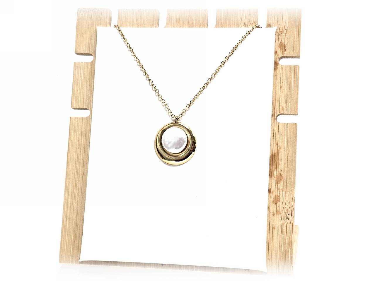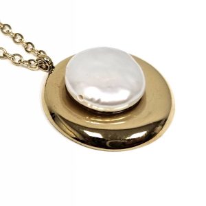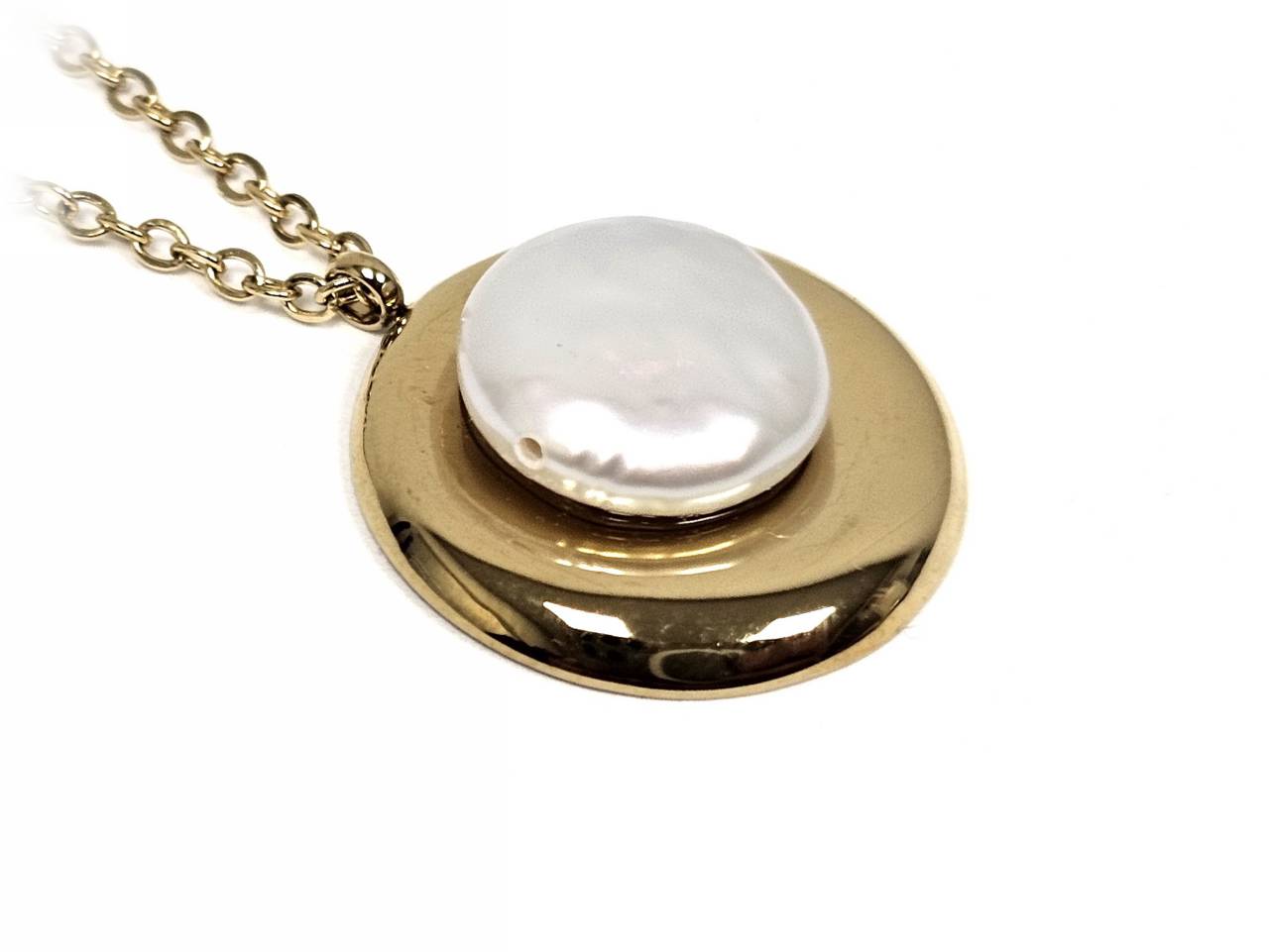 Κολιέ Ατσάλι 316L, αλυσίδα με μαργαριτάρι σε χρώμα Χρυσαφί