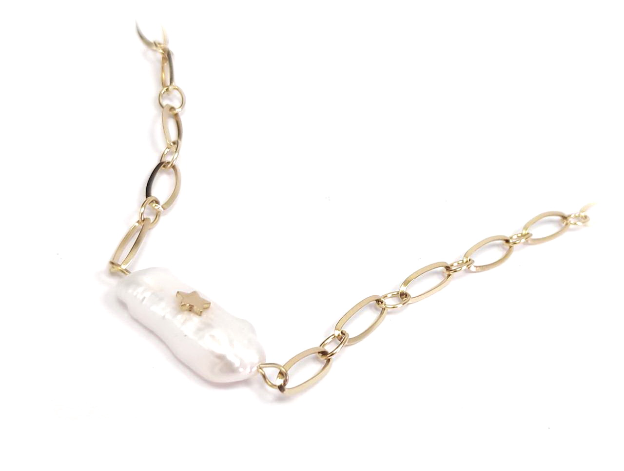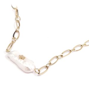 Κολιέ Ατσάλι 316L, αλυσίδα με μαργαριτάρι σε χρώμα Χρυσαφί, Μήκος 40cm
