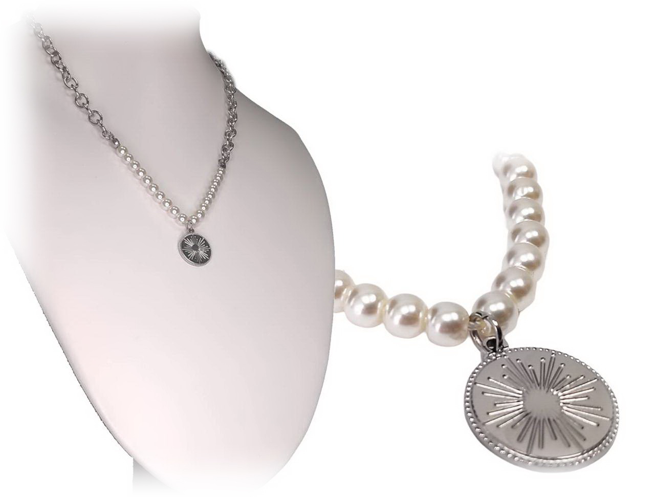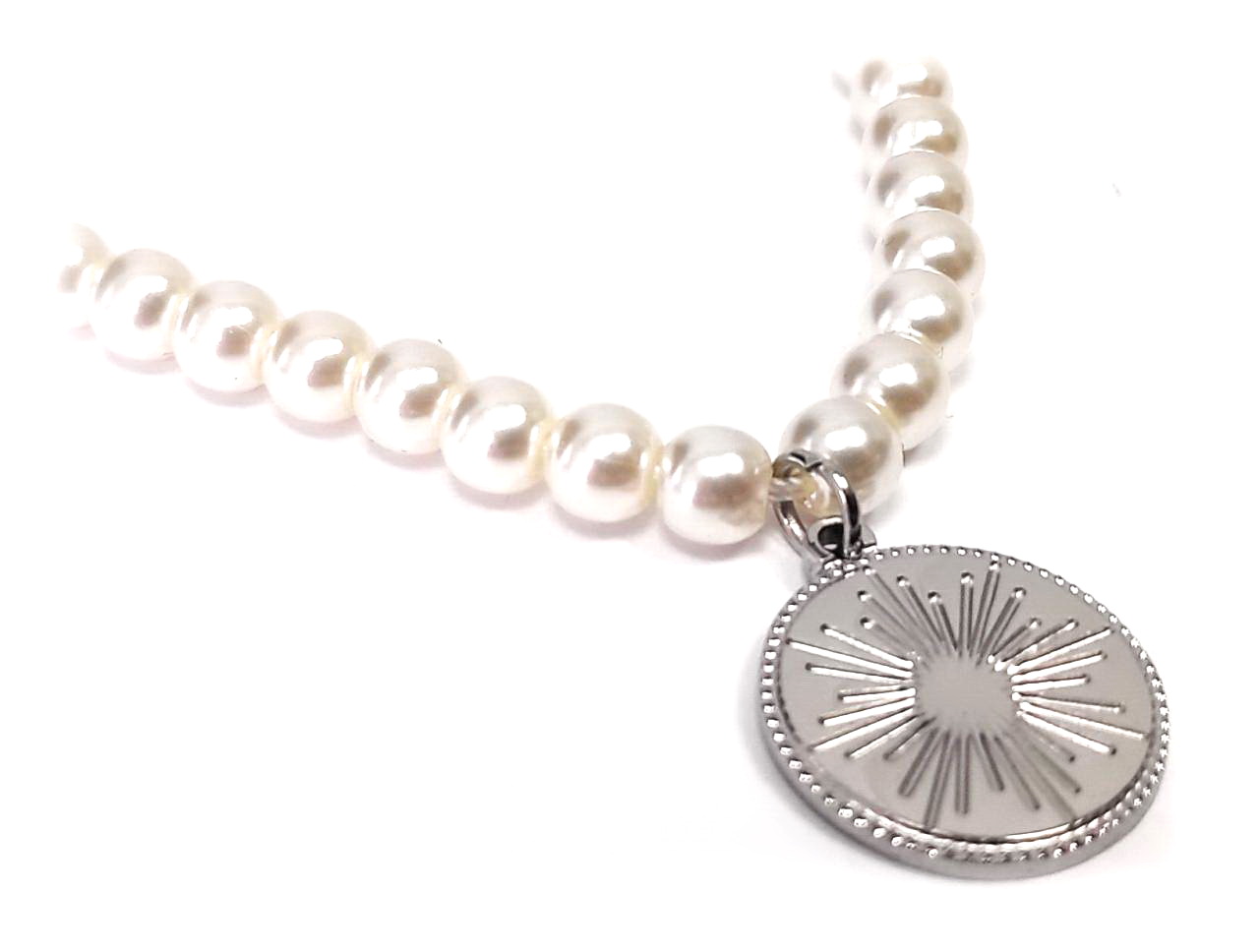 Κολιέ Ατσάλι 316L, αλυσίδα με πέρλα σε χρώμα Ασημί, Μήκος 40cm