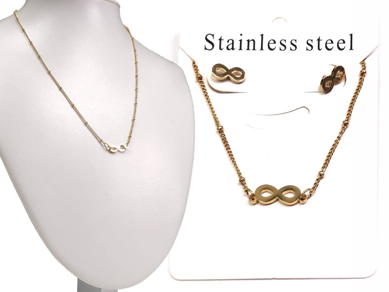Κολιέ Ατσάλι 304, αλυσίδα σετ με σκουλαρίκια σε χρώμα Χρυσαφί