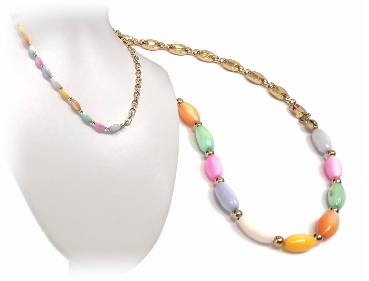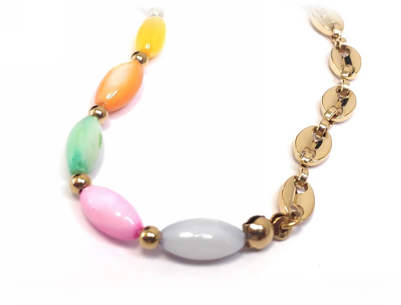 Κολιέ Πέτρα 316L, αλυσίδα με πολύχρωμα μαργαριτάρια σε χρώμα Χρυσαφί