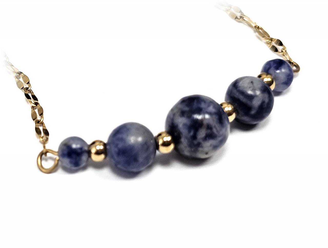 Κολιέ Πέτρα ημιπολύτιμη 4-6-8-6-4mm, ατσάλι σε χρώμα Χρυσαφί
