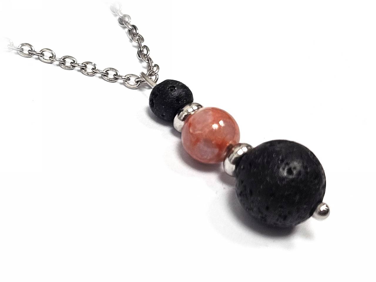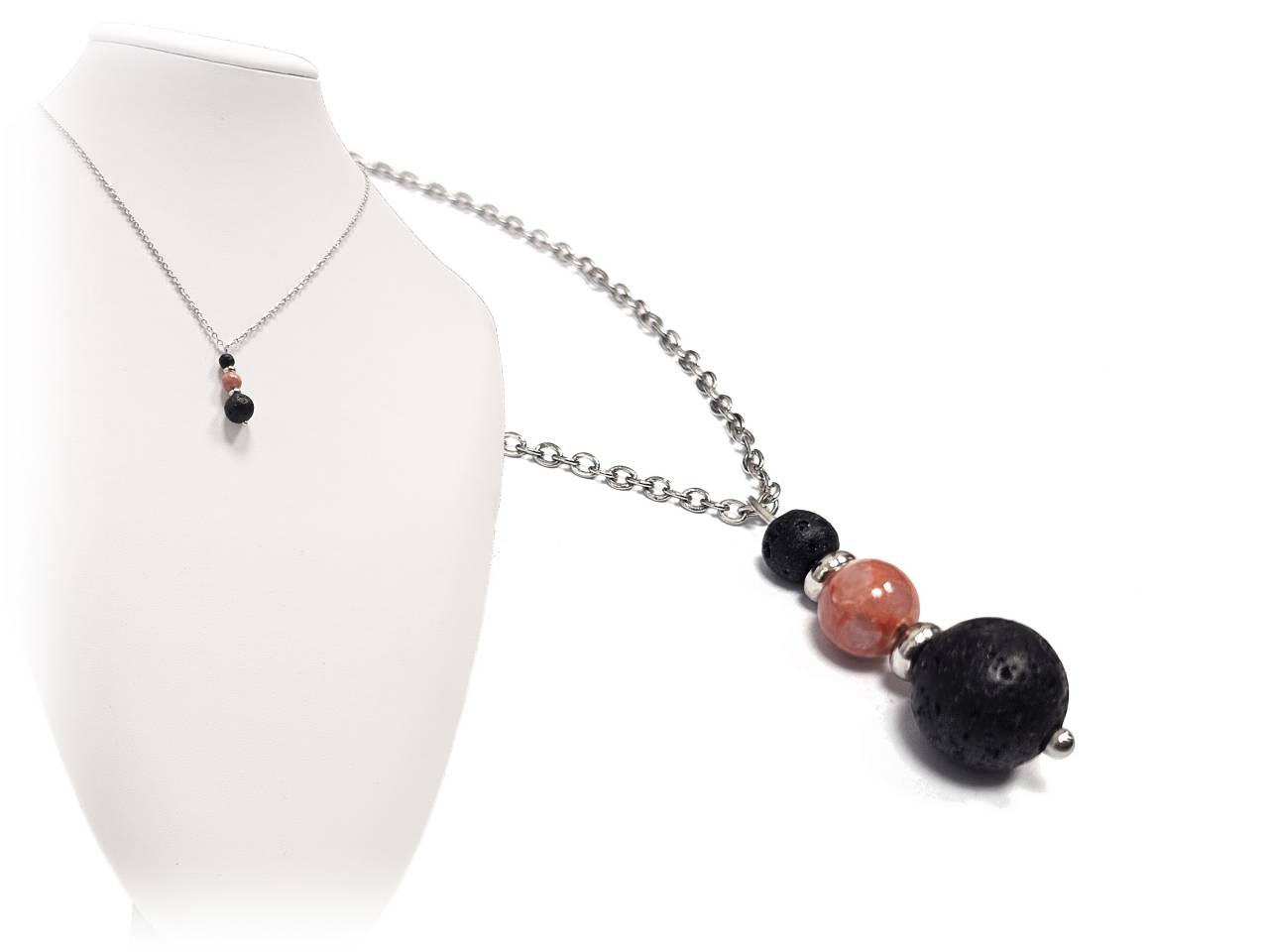 Κολιέ Πέτρα ημιπολύτιμη και λάβα, ατσάλι σε χρώμα Ασημί