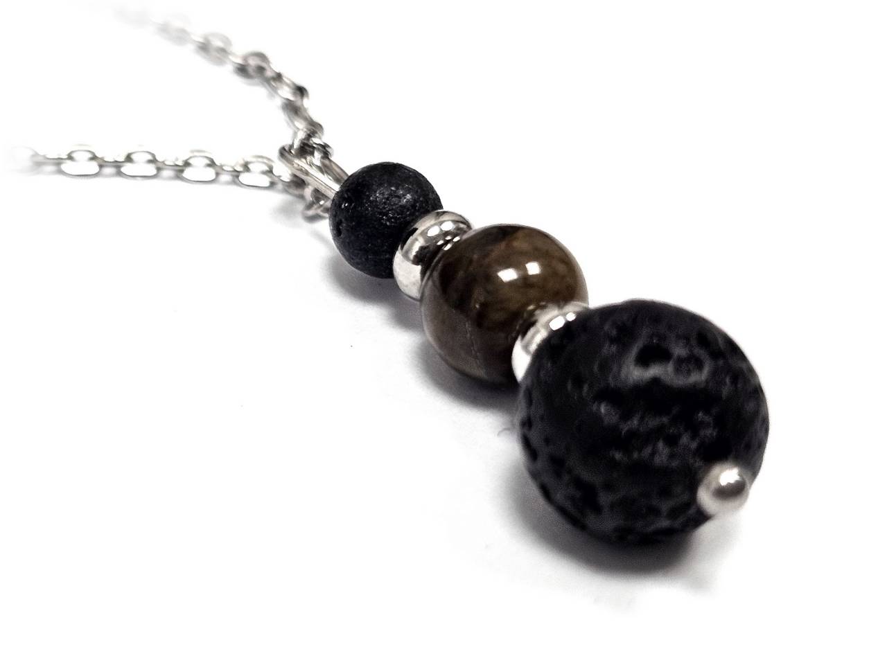 Κολιέ Πέτρα ημιπολύτιμη και λάβα, ατσάλι σε χρώμα Ασημί