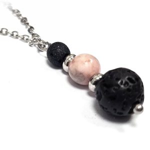 Κολιέ Πέτρα ημιπολύτιμη και λάβα, ατσάλι σε χρώμα Ασημί