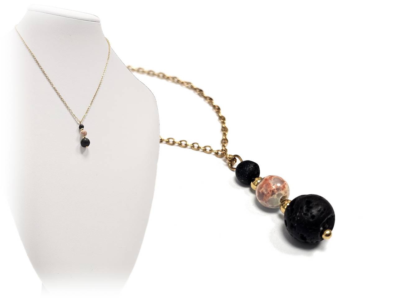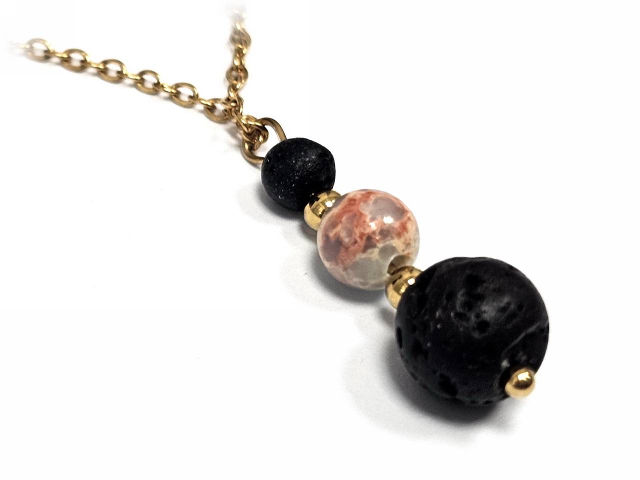 Κολιέ Πέτρα ημιπολύτιμη και λάβα, ατσάλι σε χρώμα Χρυσαφί