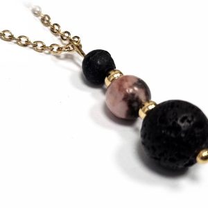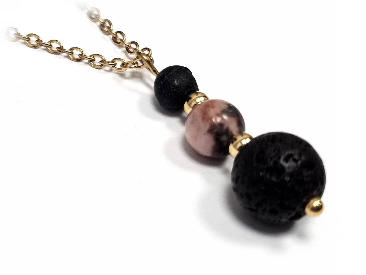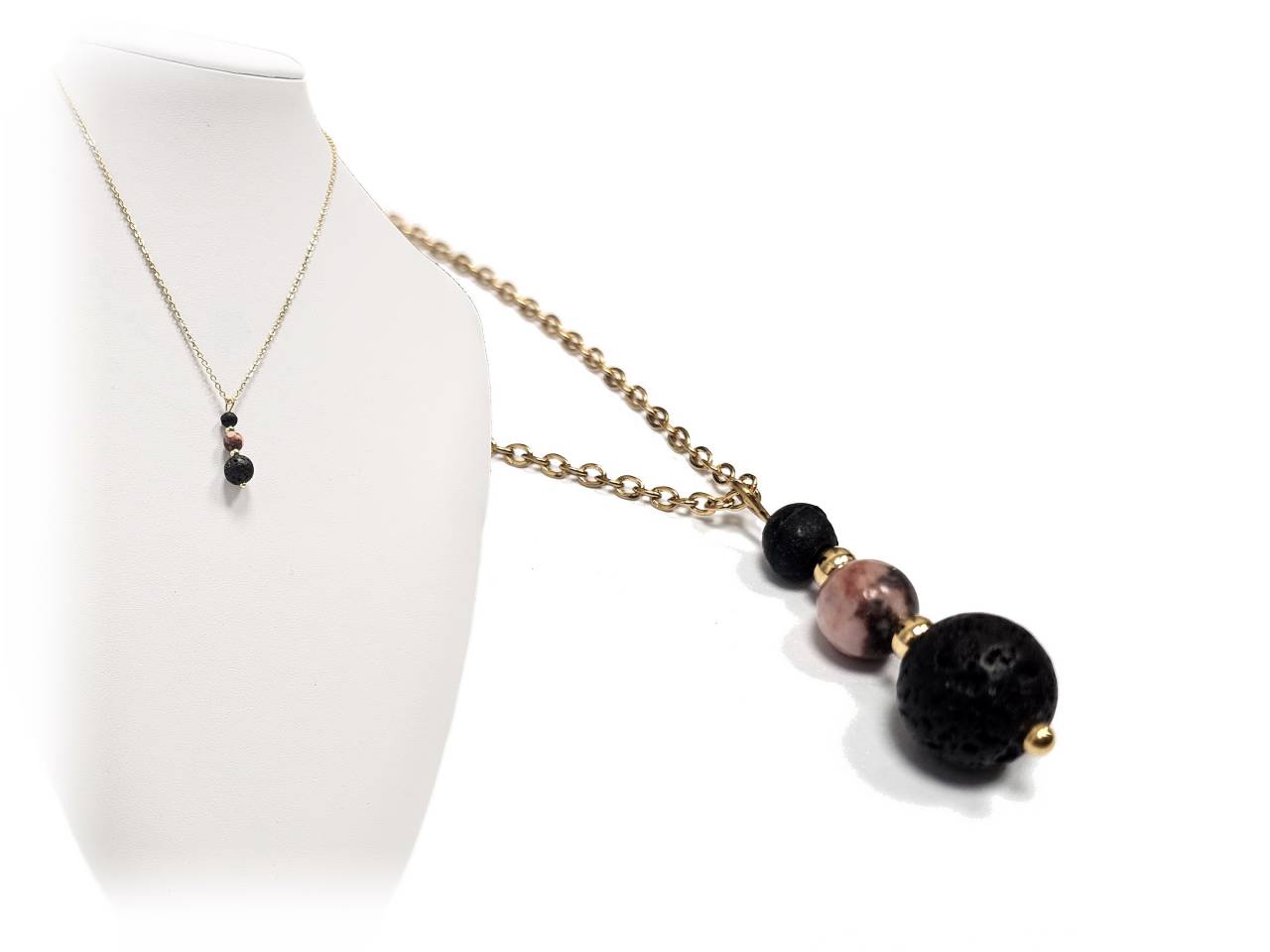 Κολιέ Πέτρα ημιπολύτιμη και λάβα, ατσάλι σε χρώμα Χρυσαφί
