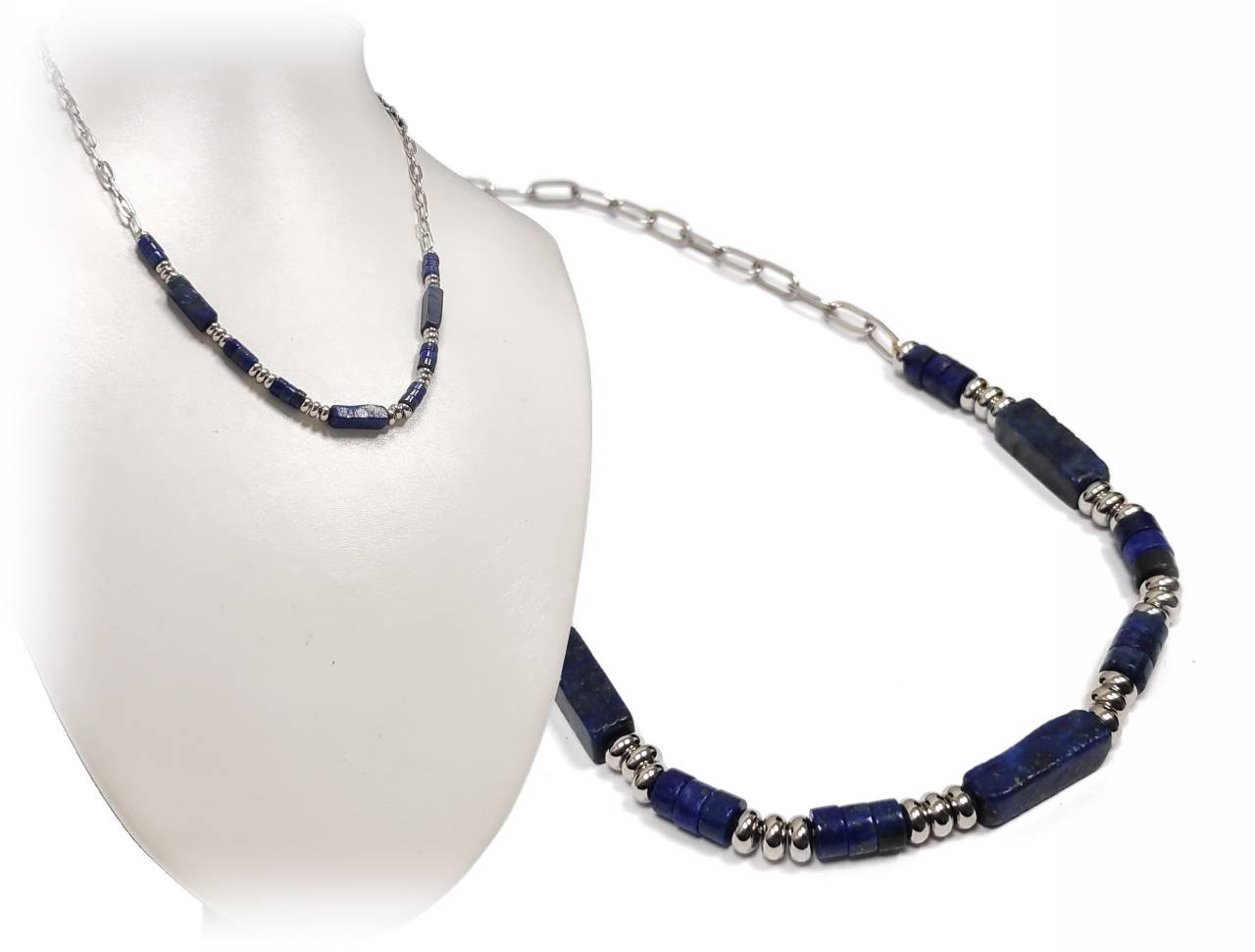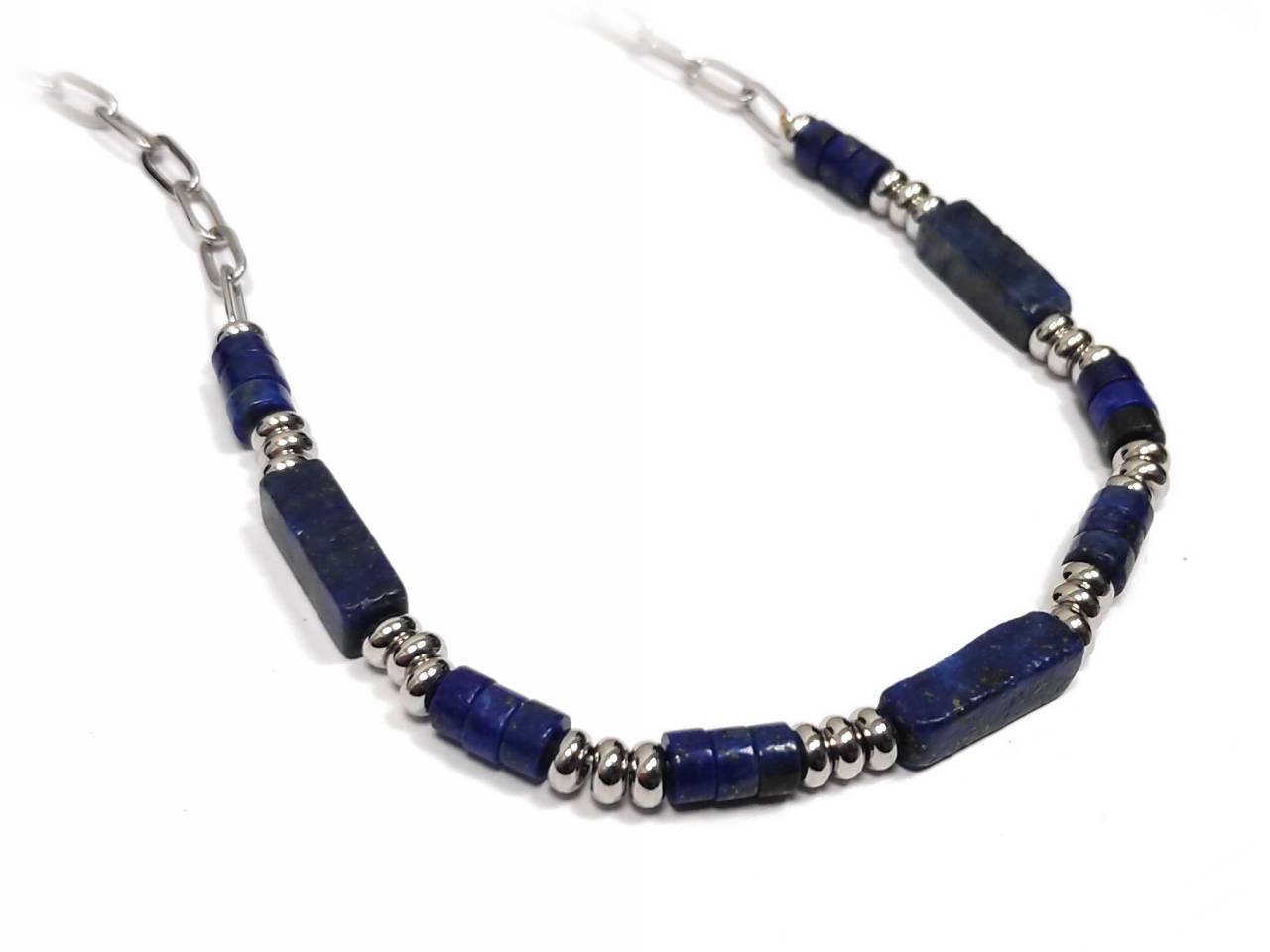 Κολιέ Πέτρα 316L, αλυσίδα με Lapis σε χρώμα Ασημί
