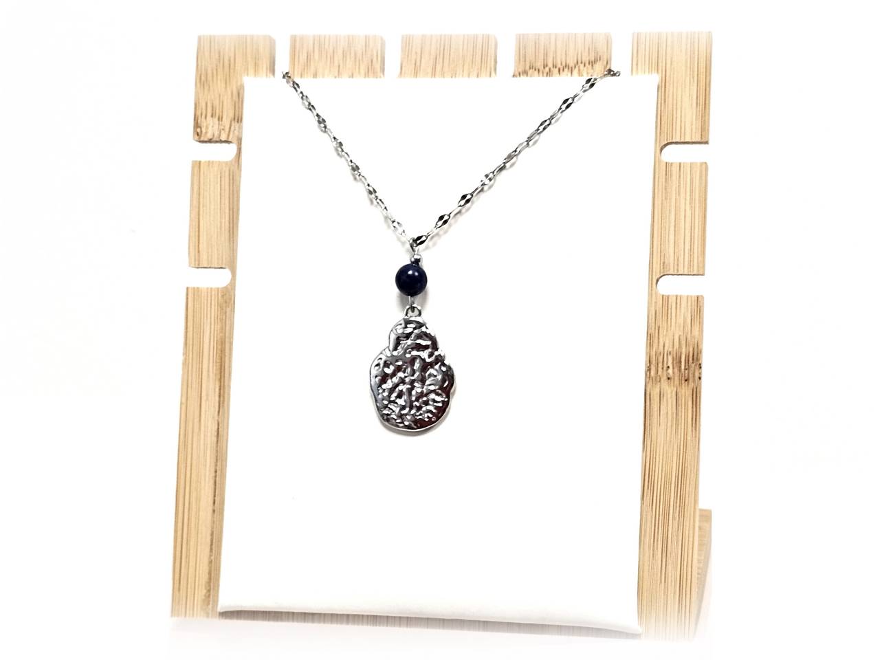 Κολιέ Πέτρα 316L, αλυσίδα με Lapis σε χρώμα Ασημί