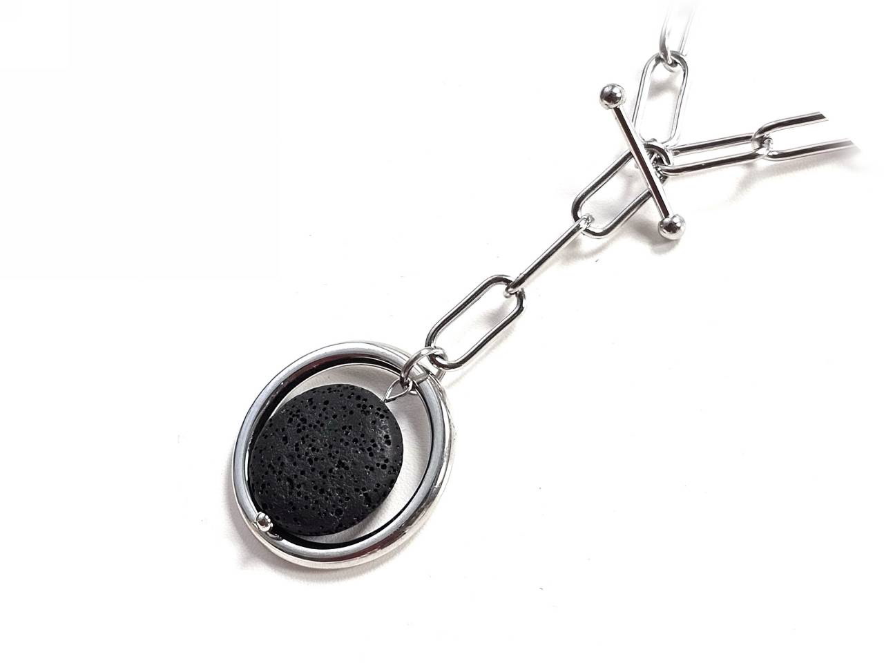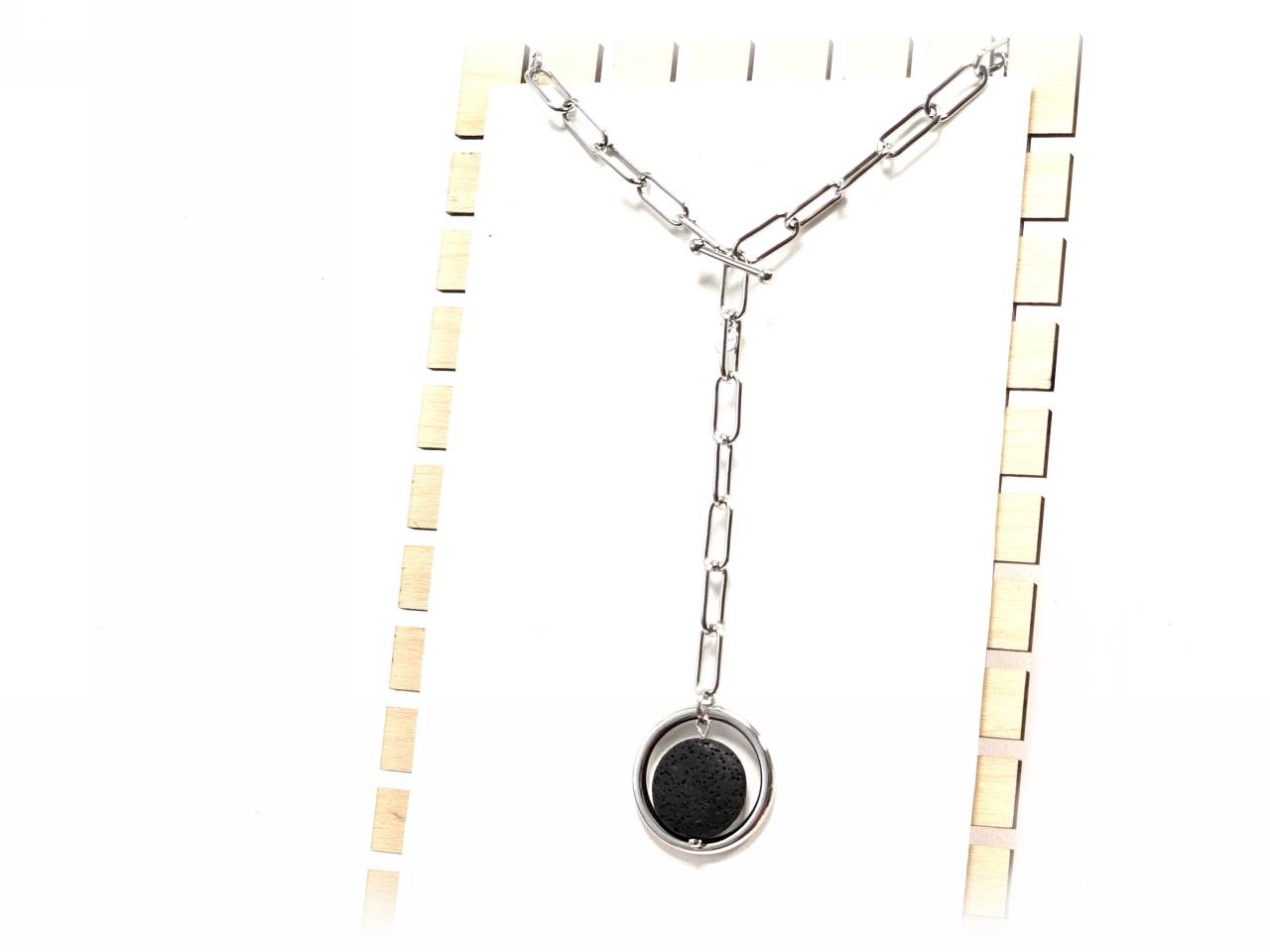 Κολιέ Πέτρα 316L, αλυσίδα με λάβα σε χρώμα Ασημί