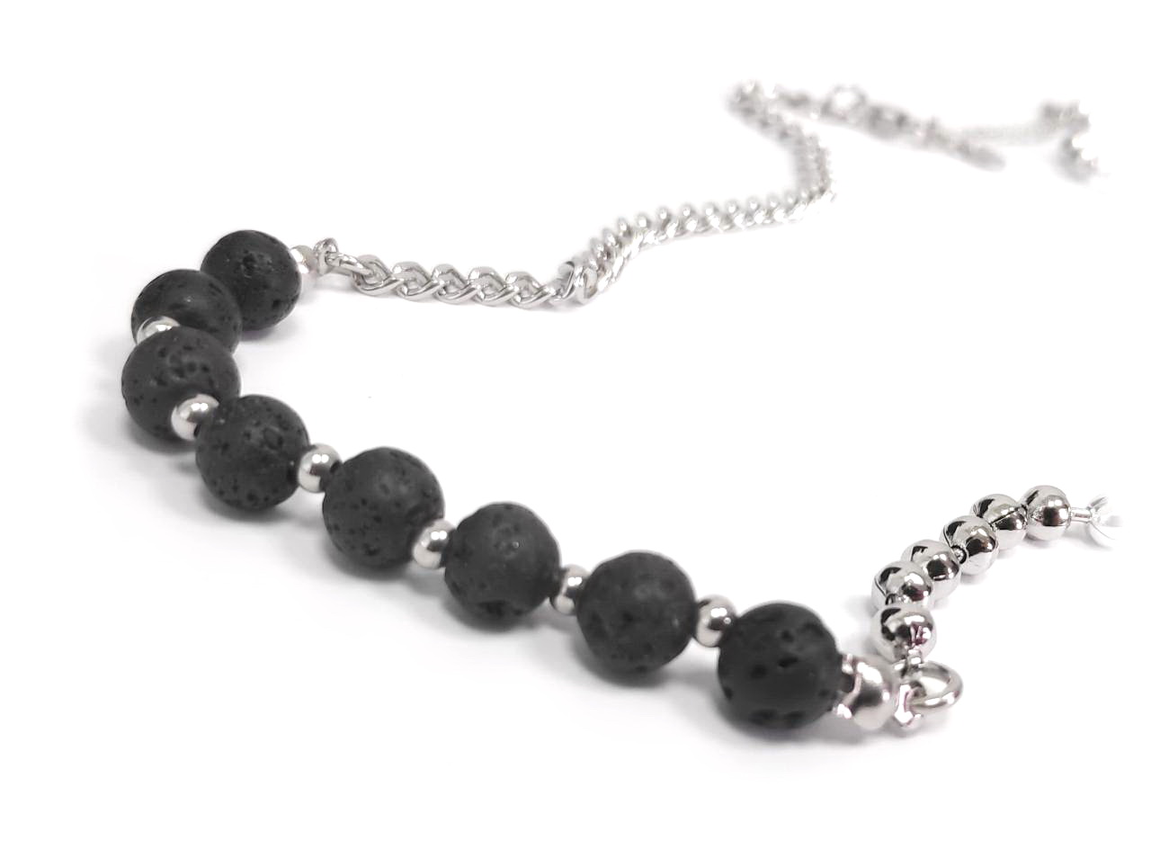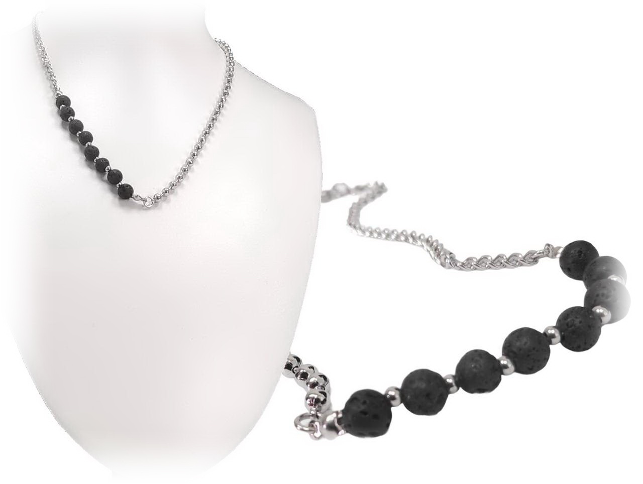 Κολιέ Πέτρα 316L, αλυσίδα με λάβα σε χρώμα Ασημί, Μήκος 40cm