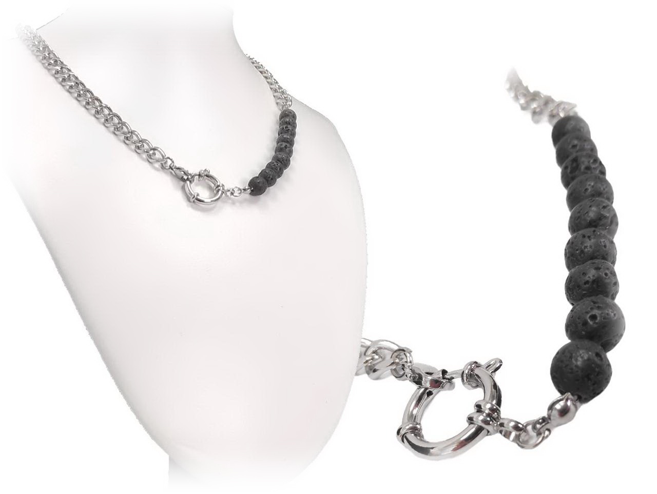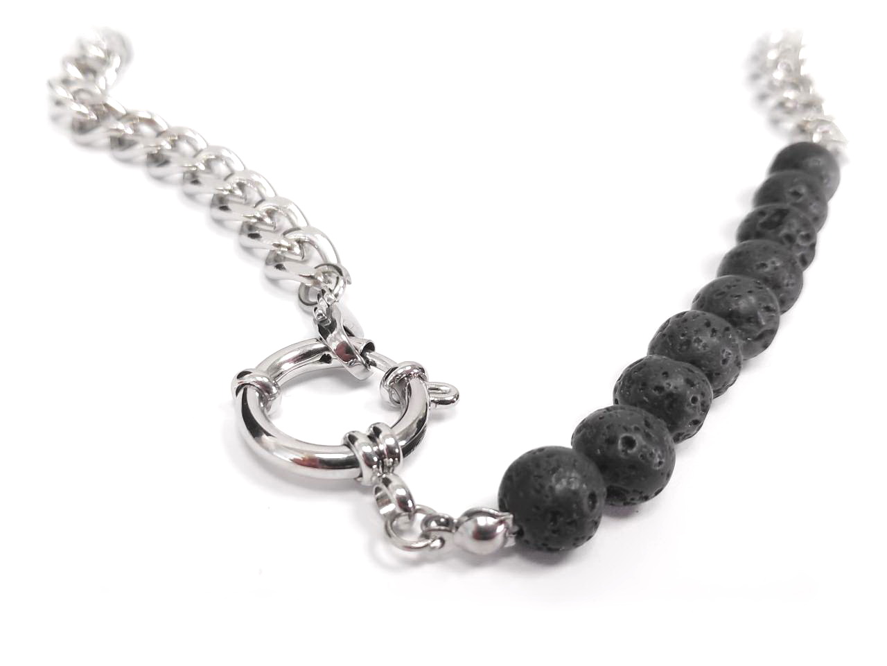 Κολιέ Πέτρα 316L, αλυσίδα με λάβα σε χρώμα Ασημί, Μήκος 40cm