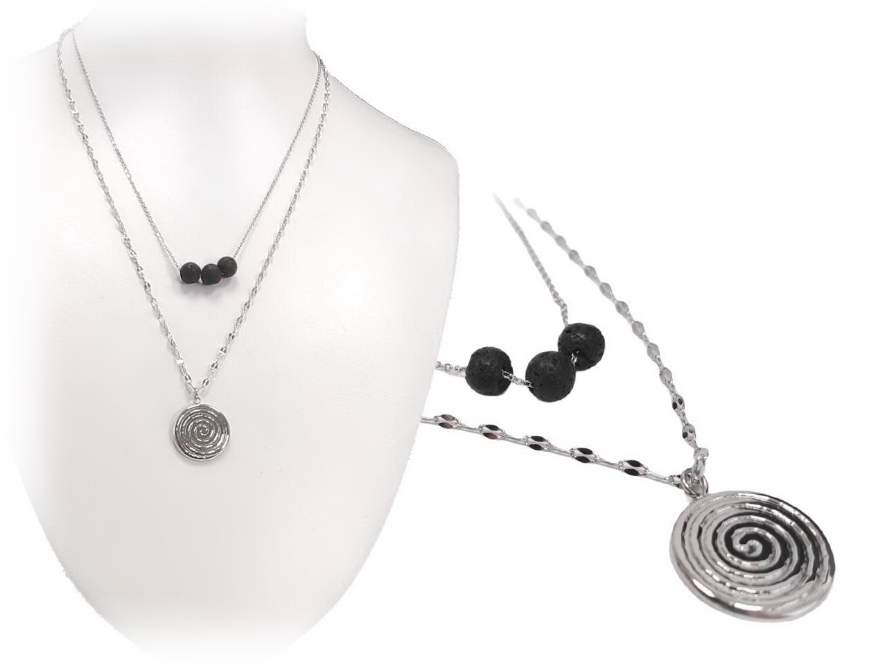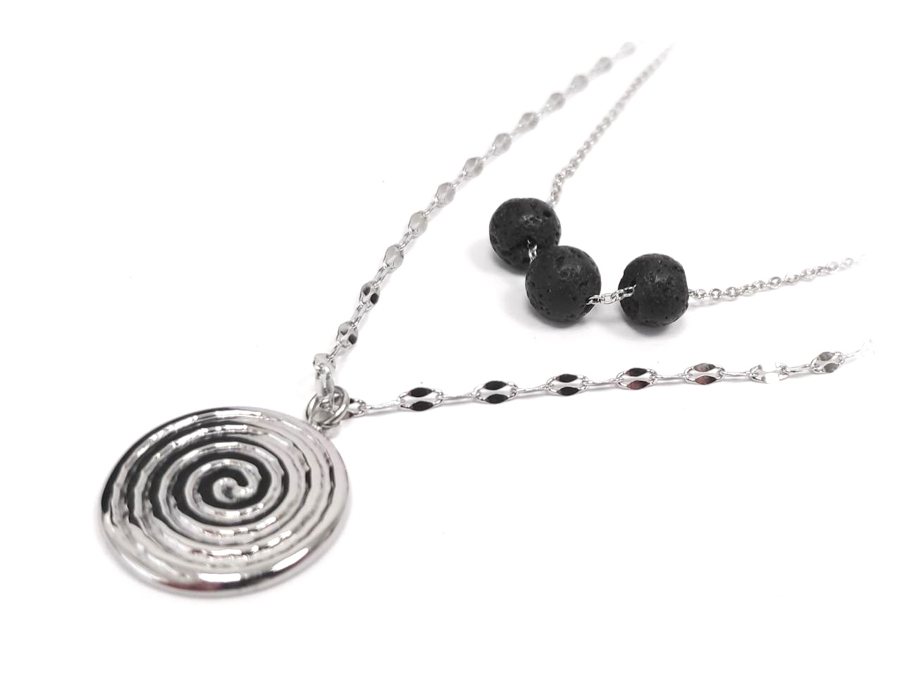 Κολιέ Πέτρα 316L, αλυσίδα με λάβα σε χρώμα Ασημί, Μήκος 45cm