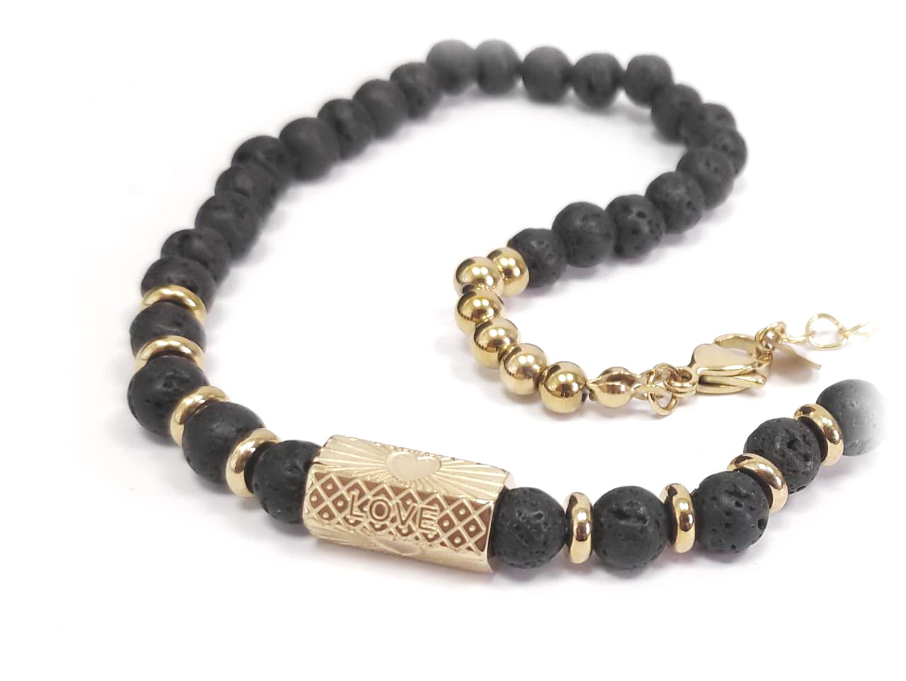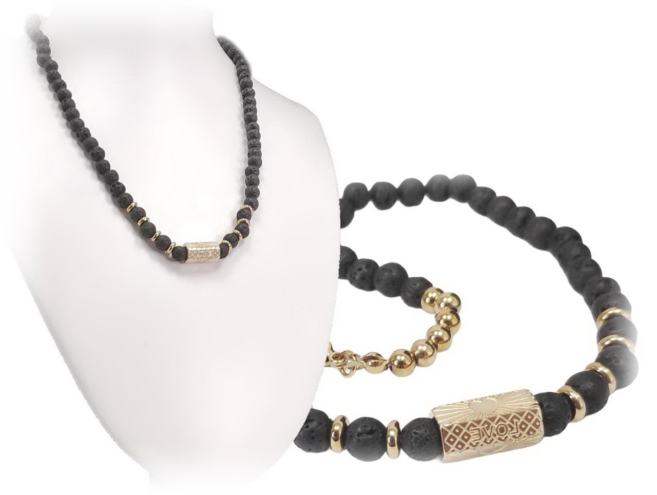 Κολιέ Πέτρα 316L, με λάβα σε χρώμα Χρυσαφί, Μήκος 40cm