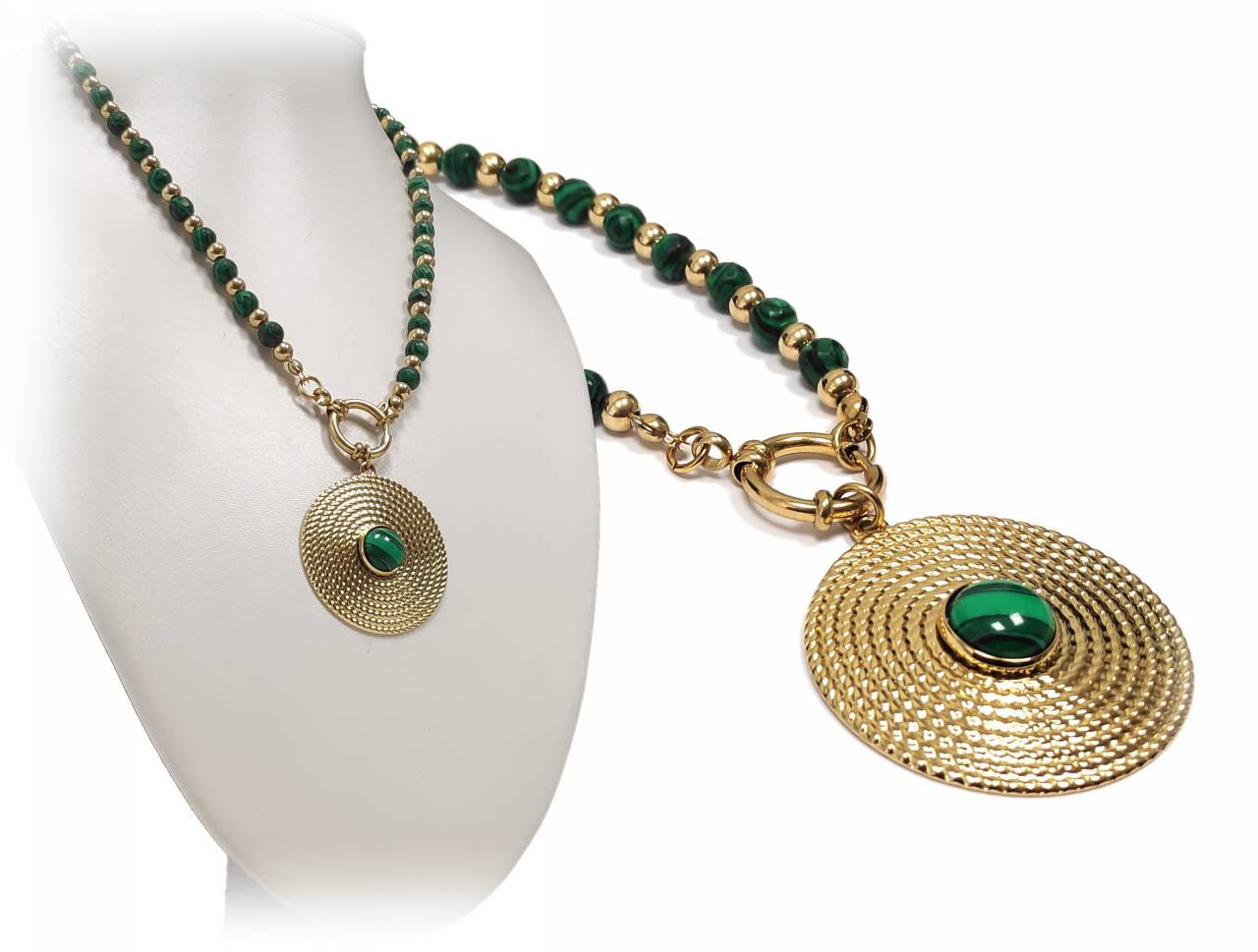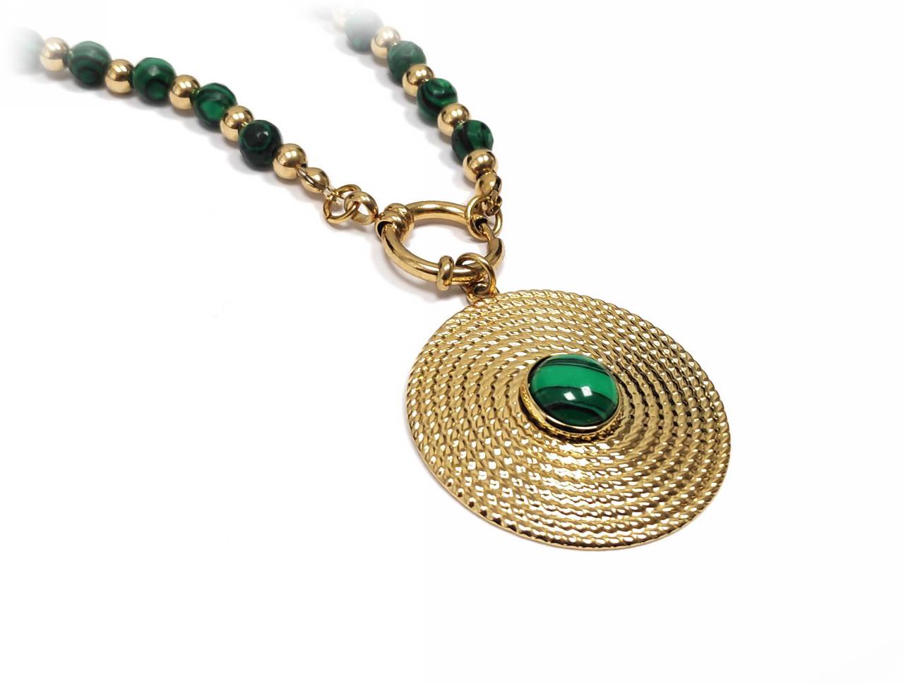 Κολιέ Πέτρα 316L, αλυσίδα με μαλαχίτη σε χρώμα Χρυσαφί