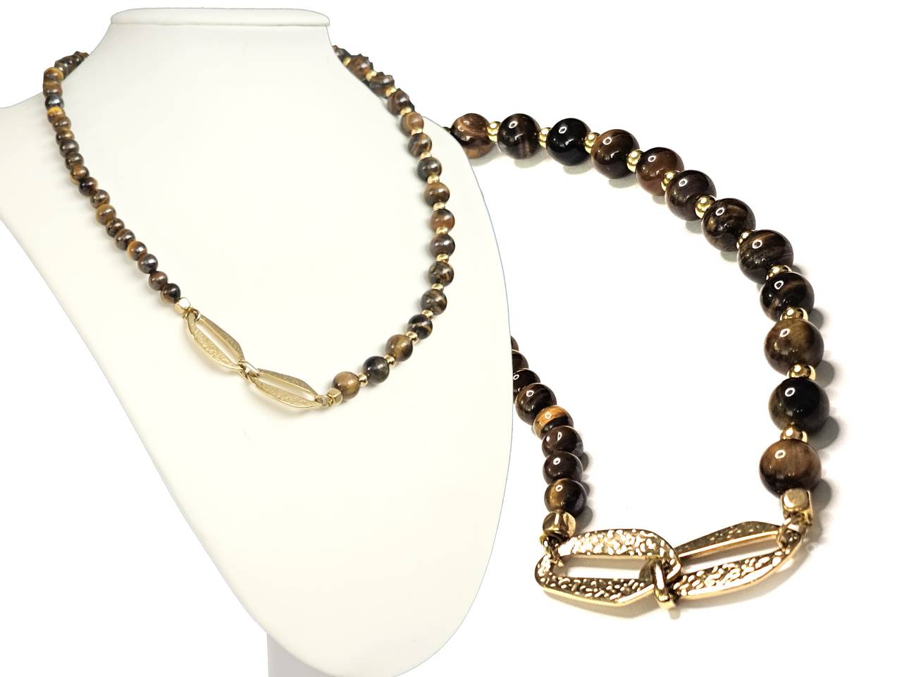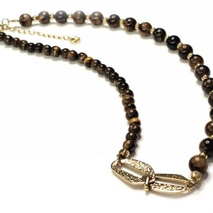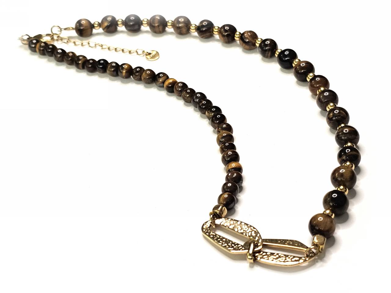 Κολιέ Πέτρα ατσάλι 316L, αλυσίδα με μάτι τίγρης σε χρώμα Χρυσαφί