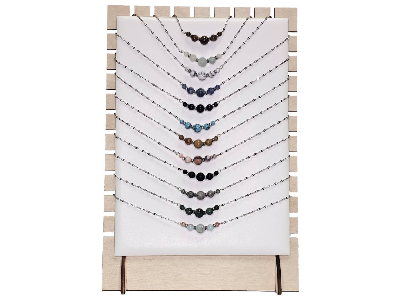 Κολιέ Πέτρα ημιπολύτιμη 4-6-8-6-4mm, ατσάλι, 12 χρώματα από 2 τεμ. σε χρώμα Ασημί Σταντ(24Τεμ.)