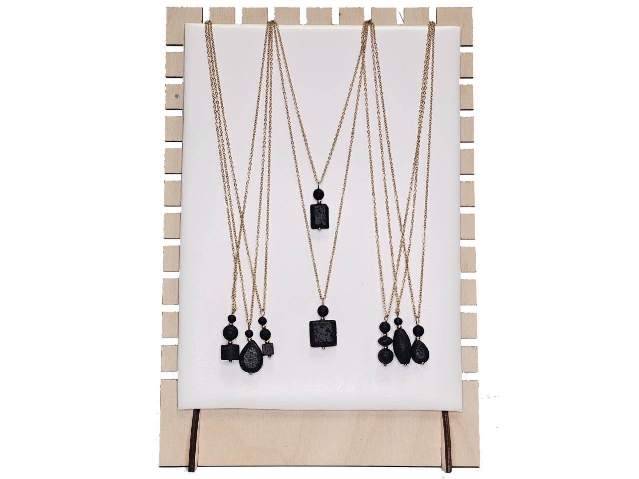Κολιέ Πέτρα λάβα, ατσάλι, 8 σχέδια από 3 τεμ. σε χρώμα Χρυσαφί Σταντ(24Τεμ.)