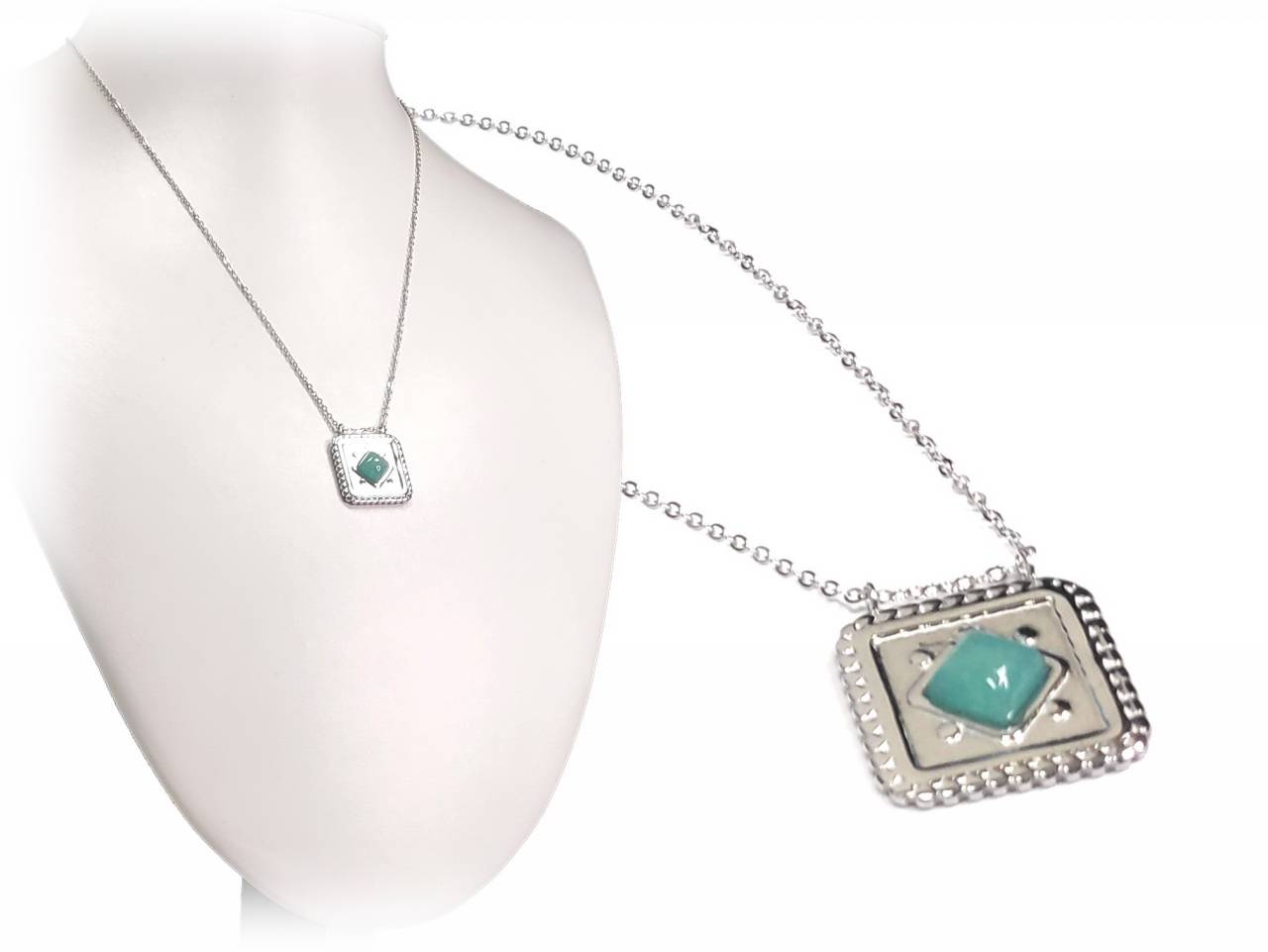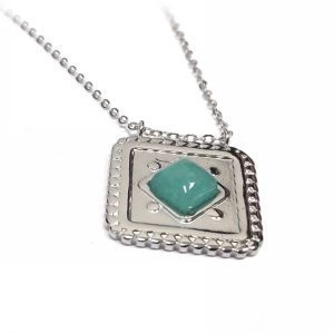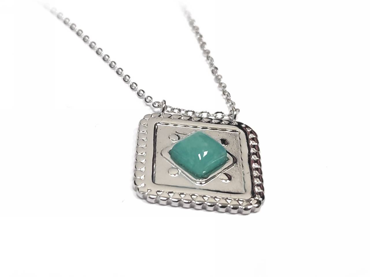Κολιέ Πέτρα 316L, αλυσίδα με πέτρα σε χρώμα Ασημί, Μήκος 40cm