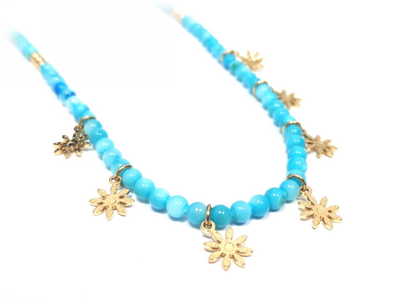 Κολιέ Πέτρα 316L, αλυσίδα με τυρκουάζ κρυσταλλάκια σε χρώμα Χρυσαφί, Μήκος 40cm