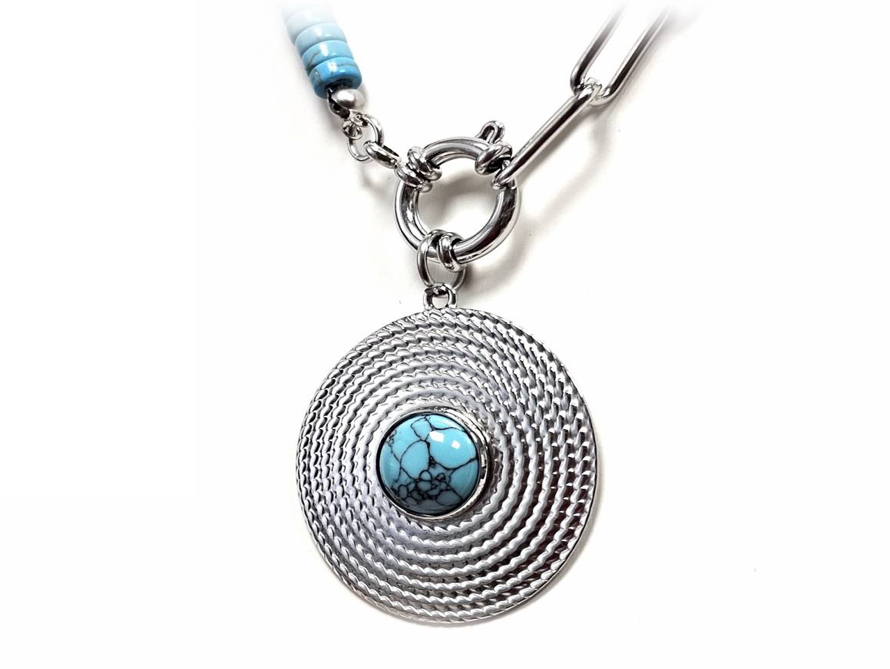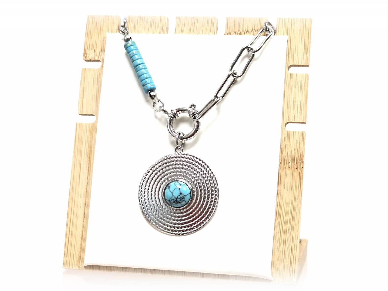 Κολιέ Πέτρα 316L, αλυσίδα με τυρκουάζ σε χρώμα Ασημί