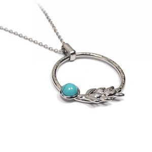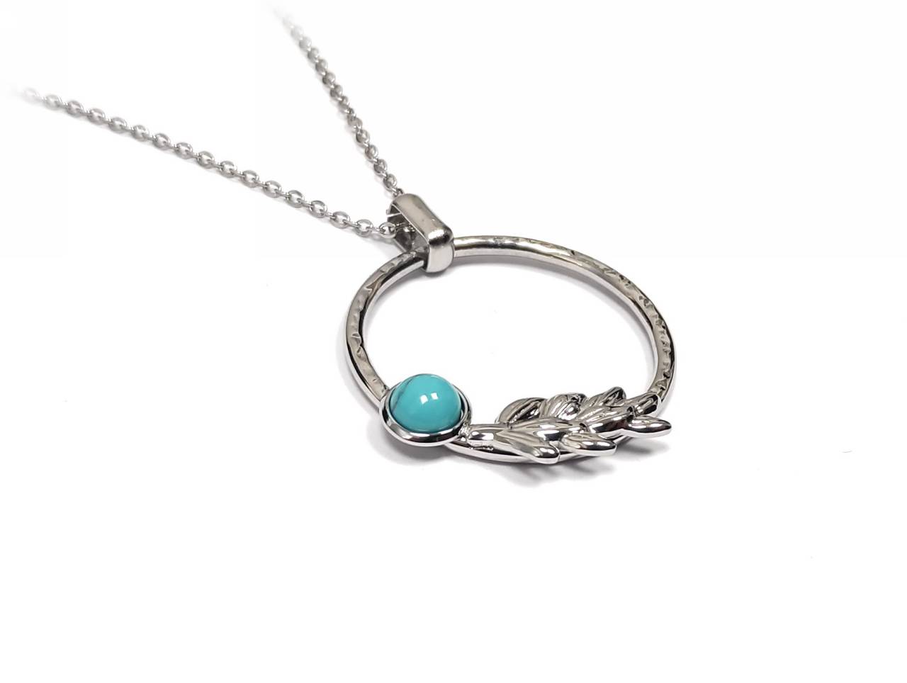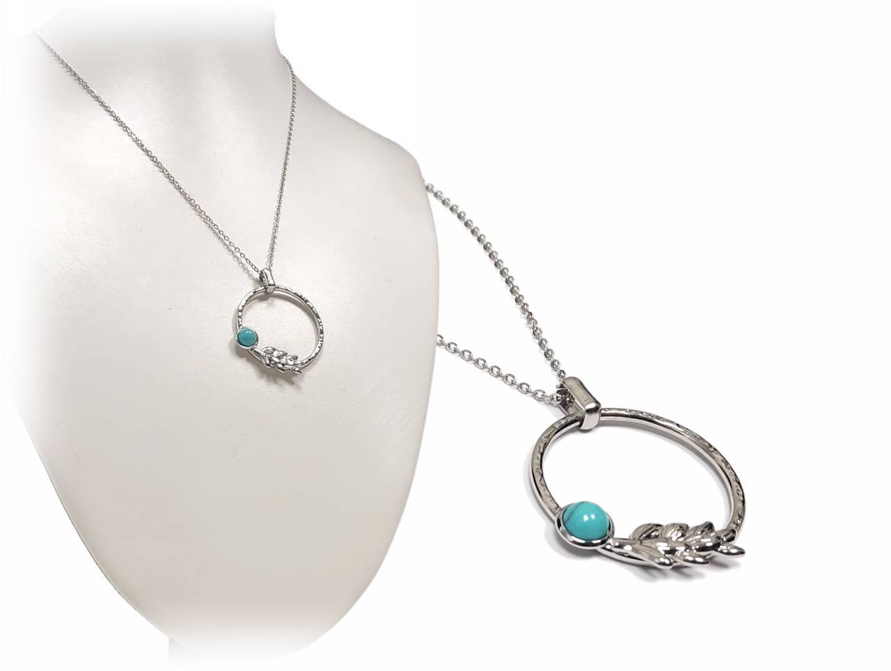 Κολιέ Πέτρα 316L, αλυσίδα με τυρκουάζ σε χρώμα Ασημί