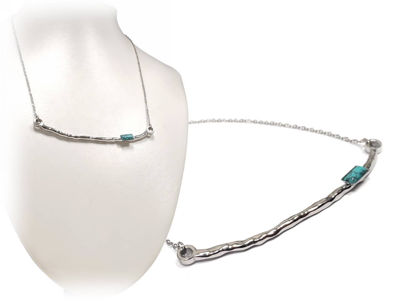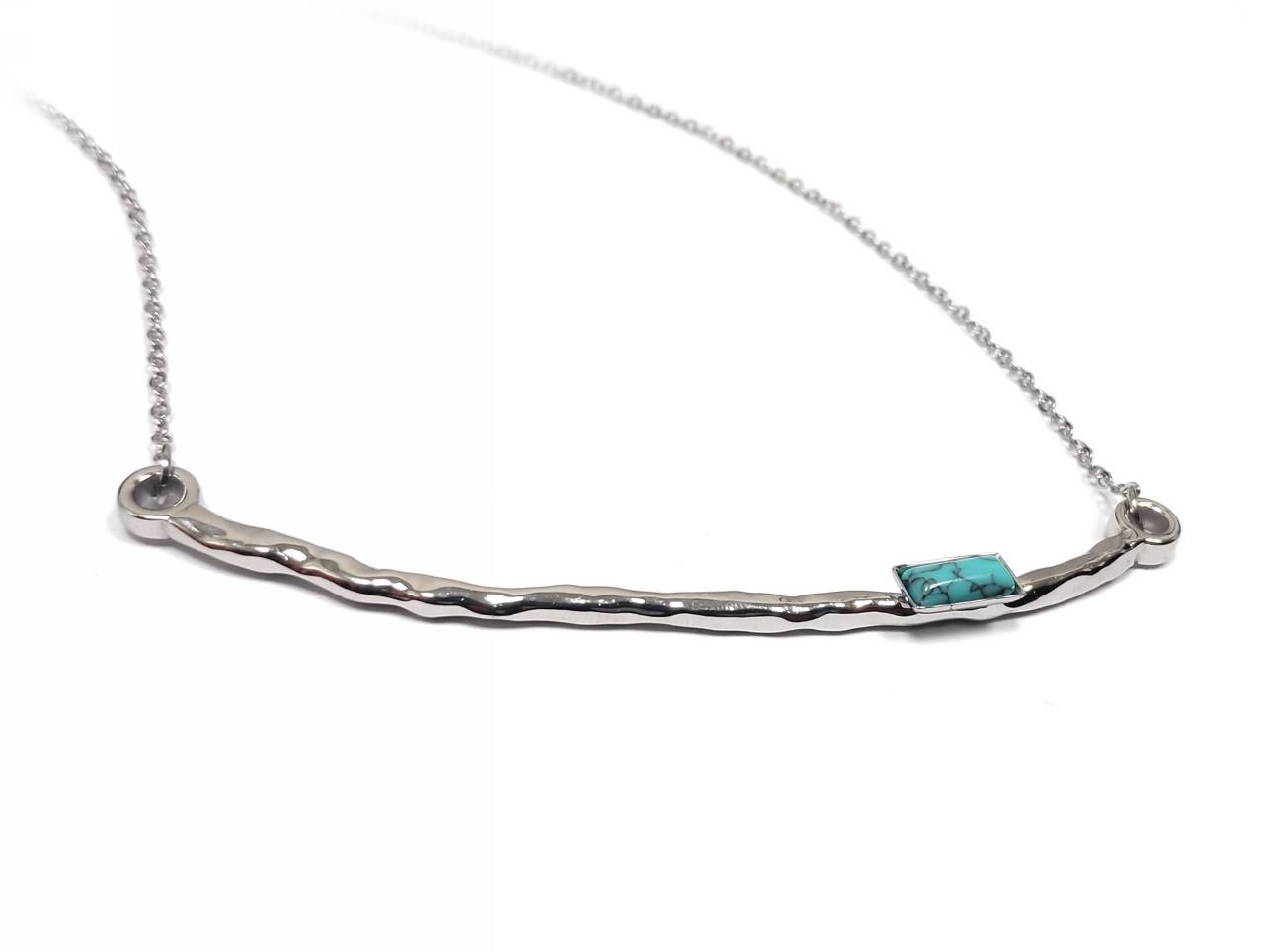 Κολιέ Πέτρα 316L, αλυσίδα με τυρκουάζ σε χρώμα Ασημί