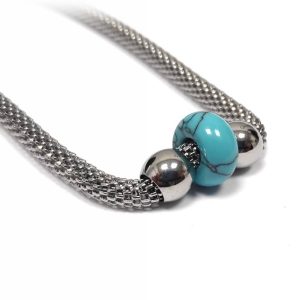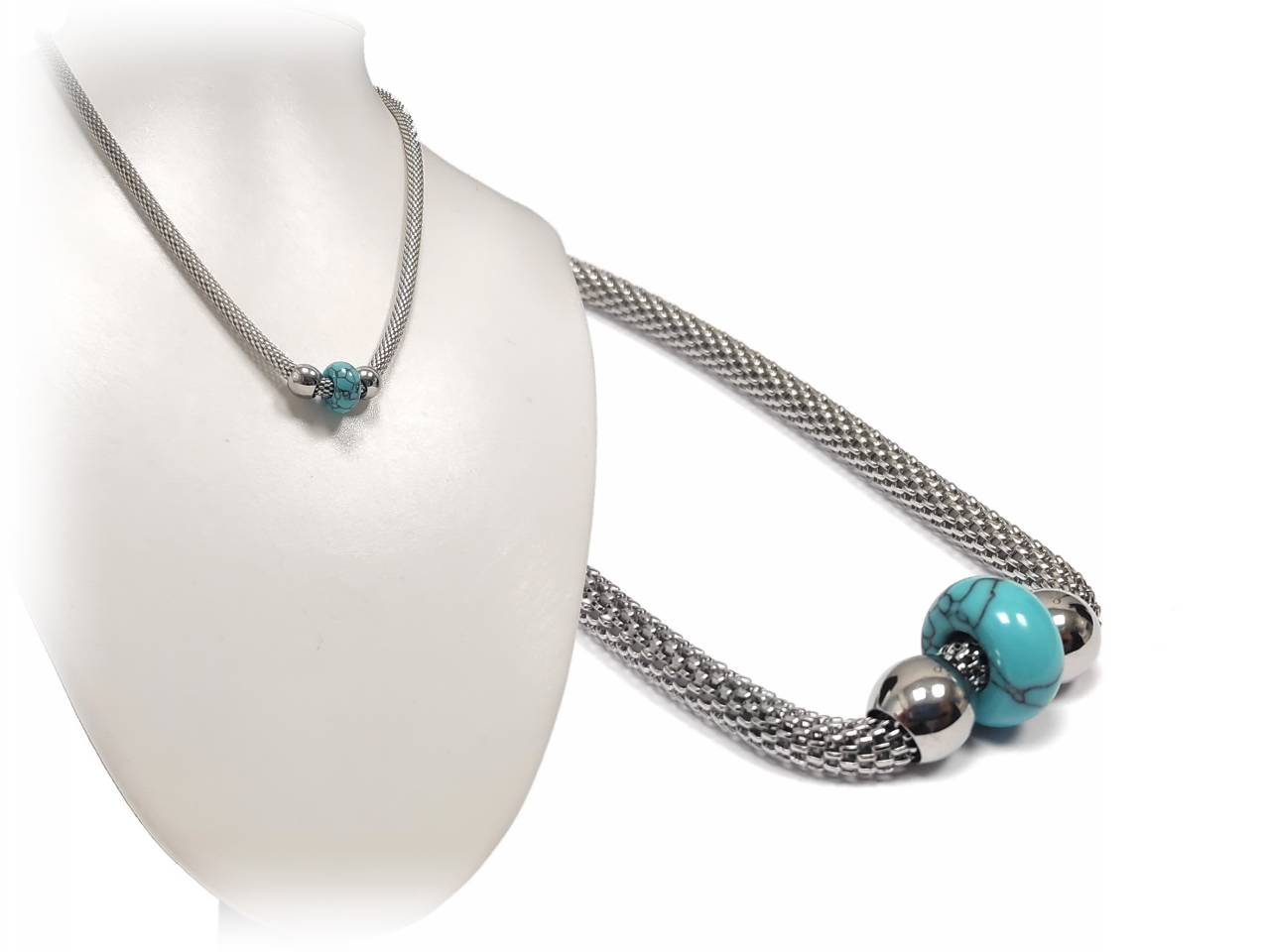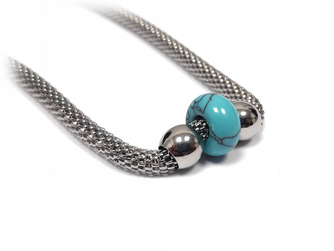 Κολιέ Πέτρα 316L, αλυσίδα με τυρκουάζ σε χρώμα Ασημί