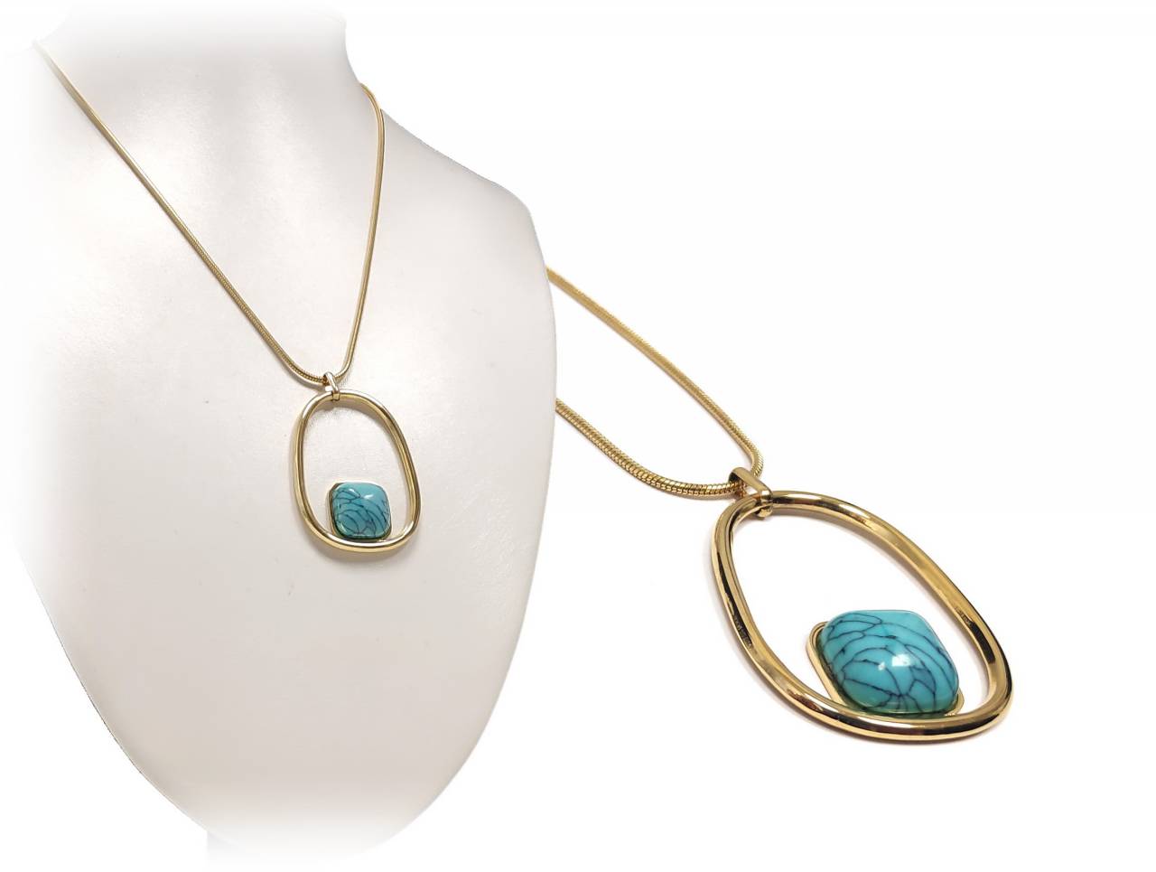 Κολιέ Πέτρα 316L, αλυσίδα με τυρκουάζ σε χρώμα Χρυσαφί