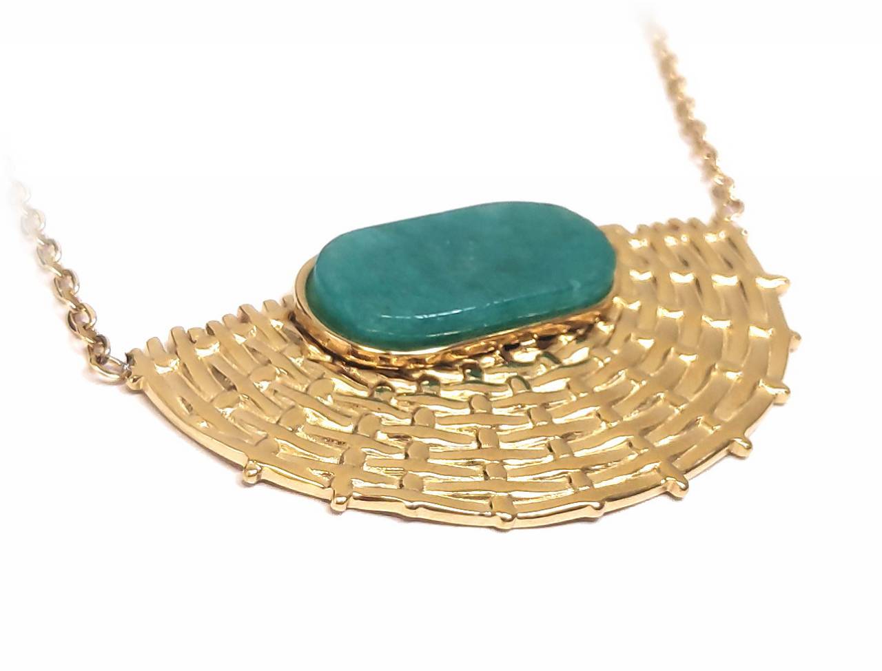 Κολιέ Πέτρα 316L, αλυσίδα με τυρκουάζ σε χρώμα Χρυσαφί
